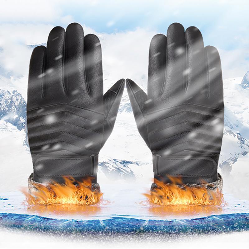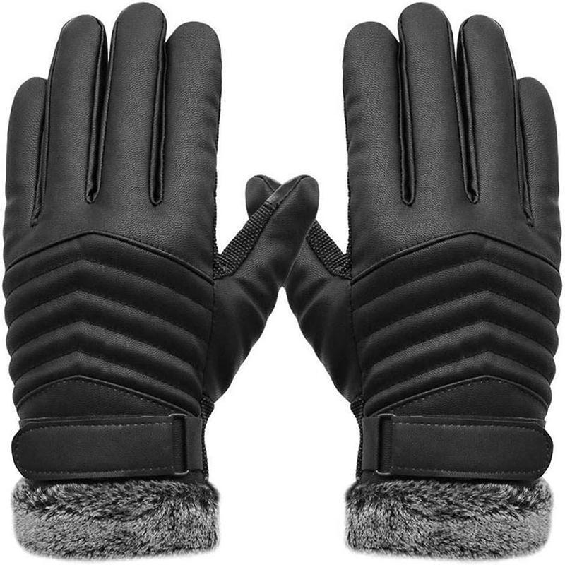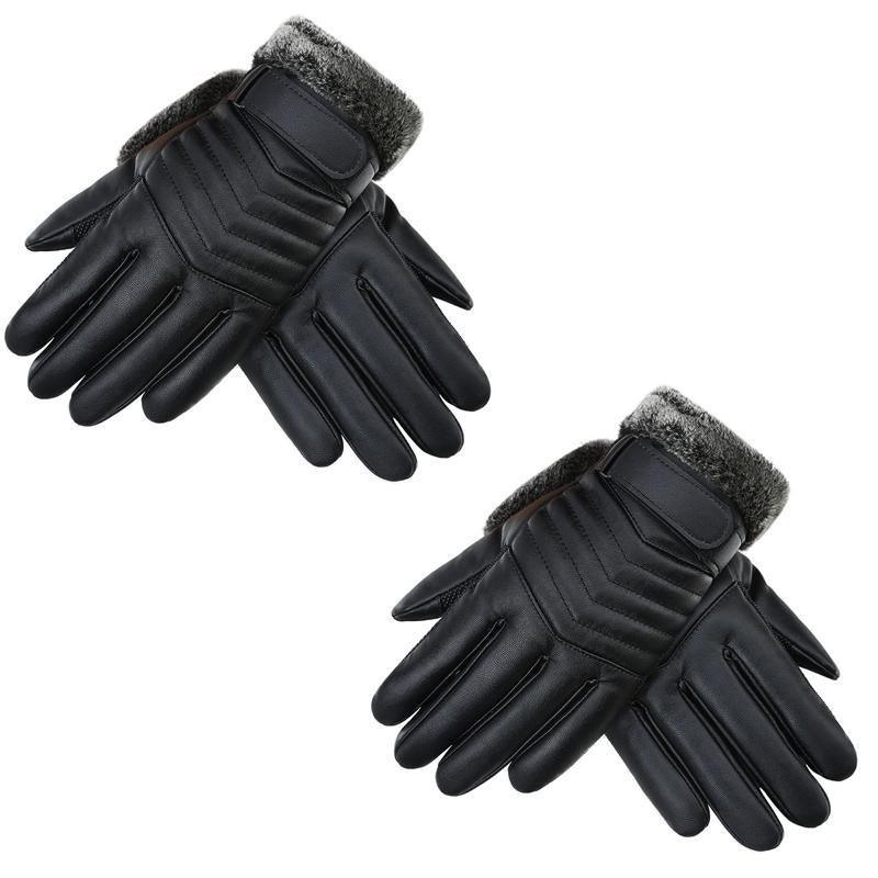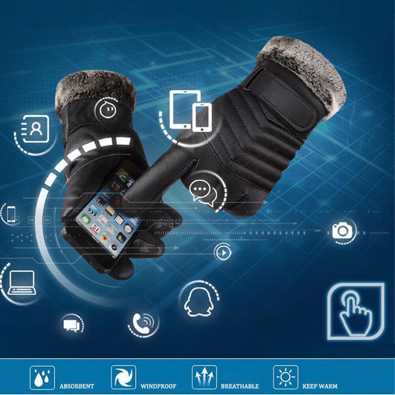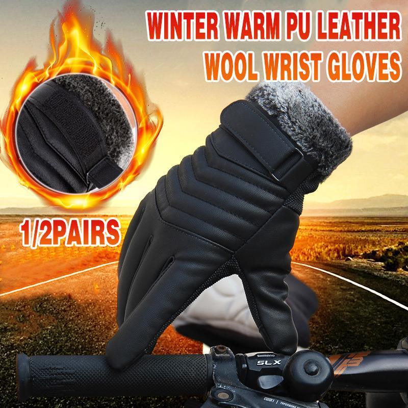 1-2 Pairs Winter Warm PU Leather Wool Wrist Gloves Touch Screen Full Finger Fur