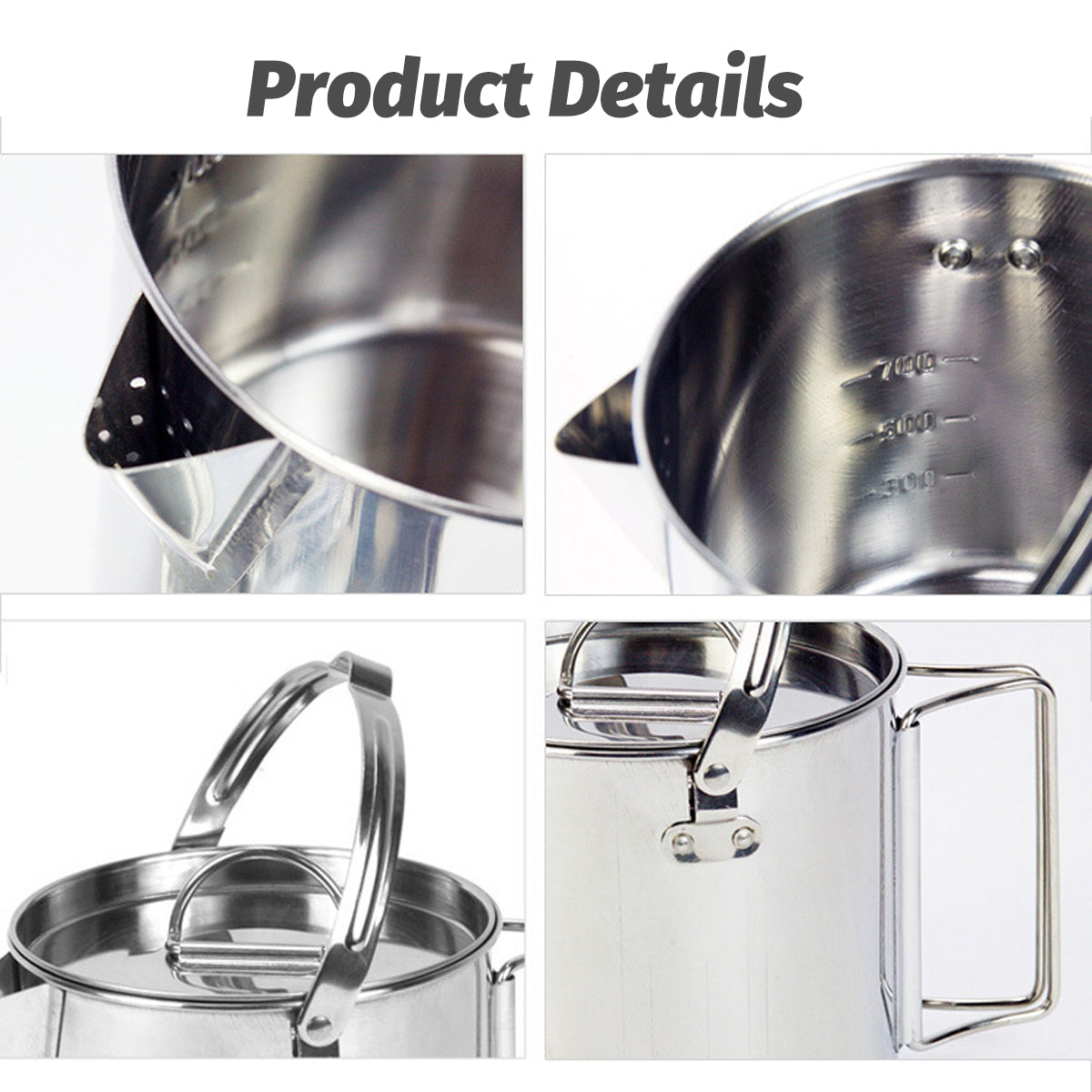 1.2L Portable Stainless Steel Camping Kettle Cookware For Hiking Outdoor Picnic