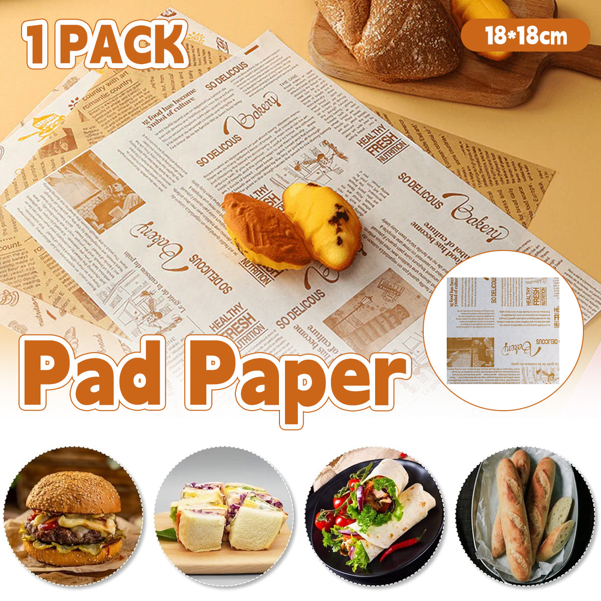 1 Pack Food-safe Pad Paper 18x18cm for Snack Baking Burger Use