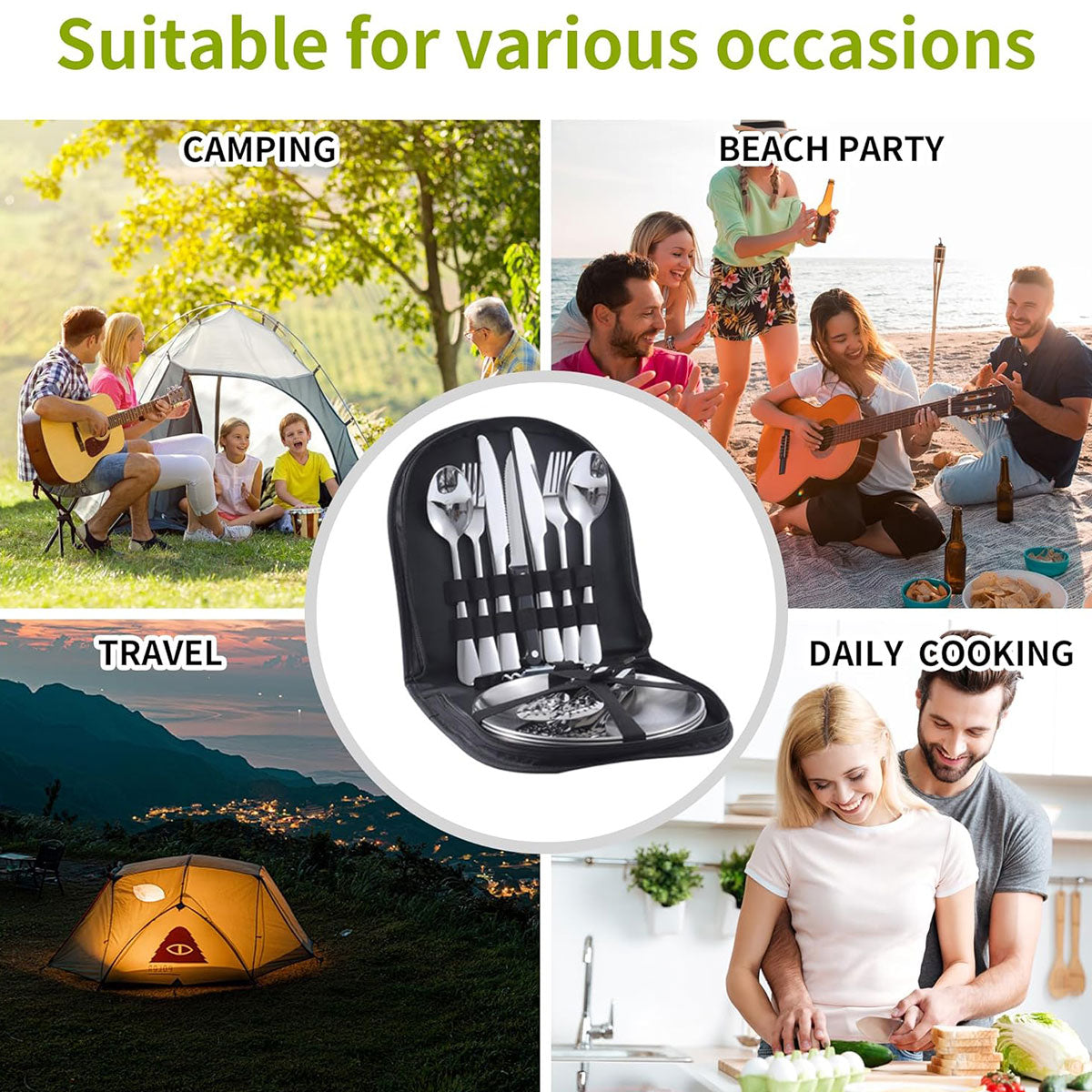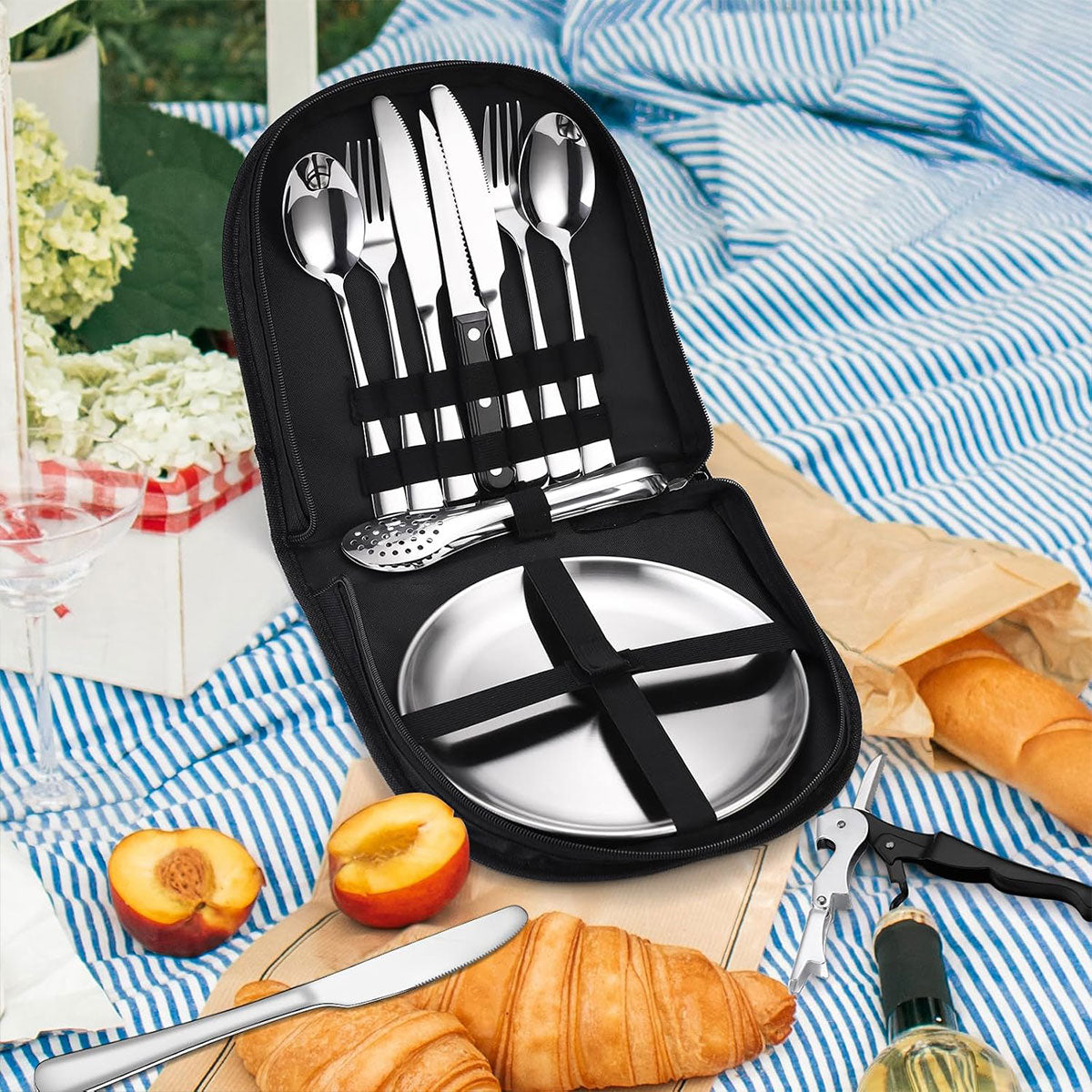 10/20PCS Camping Cutlery Set Outdoor Picnic Utensils Plates Spoons Forks Knives