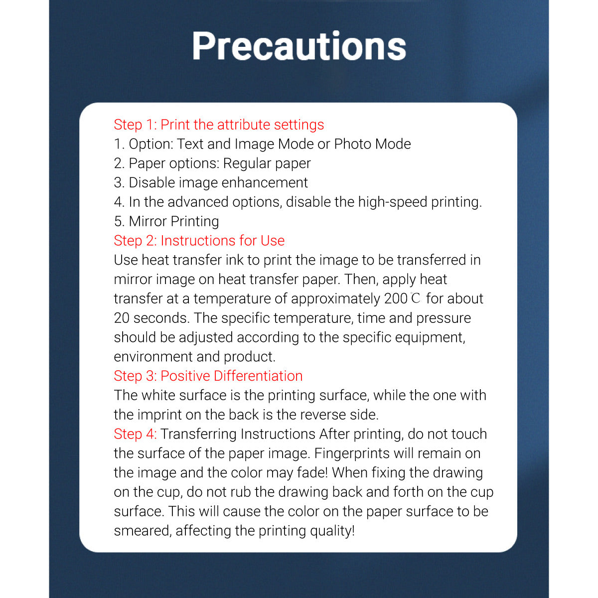 100 Sheets A4 Thermal Transfer Paper Premium Quality High Speed Quick Dry