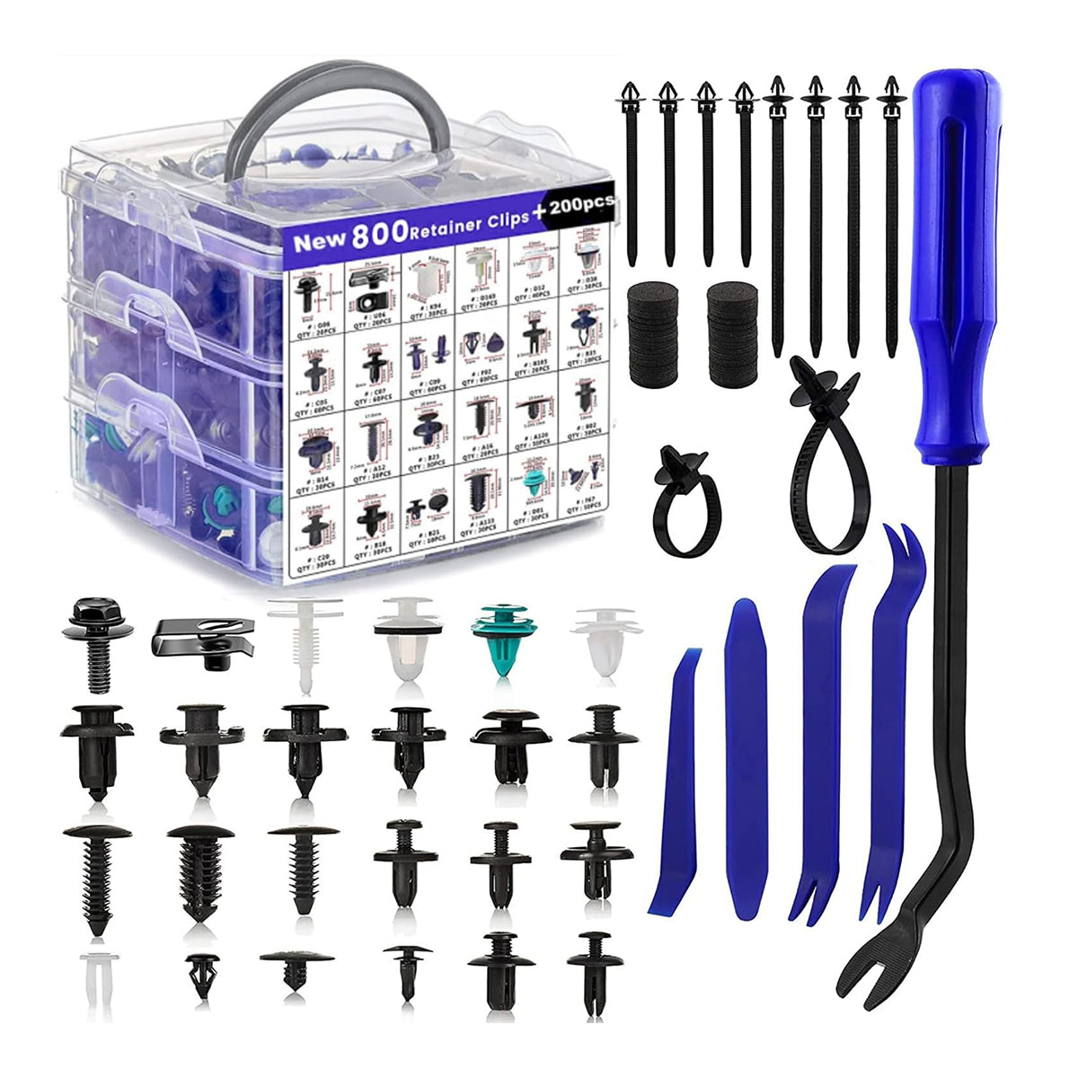 1000PCS Car Buckle Set Boxed Assorted Sizes for Fender Bumper Door Panel Repair