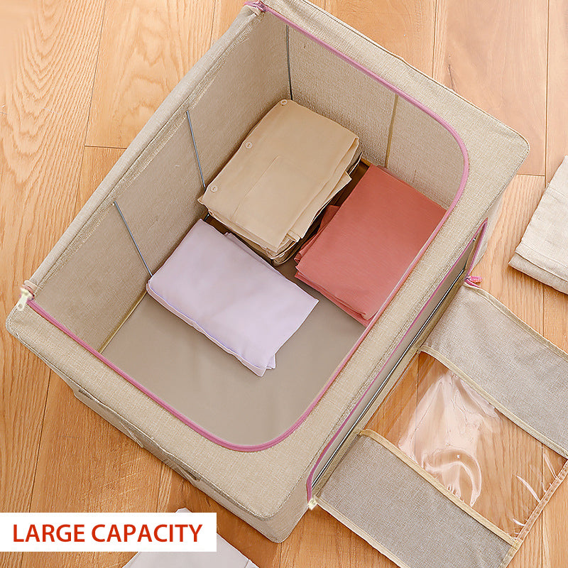 100L Foldable Storage Box Crushed Steel Frame Clothes Quilt Toys Organizer