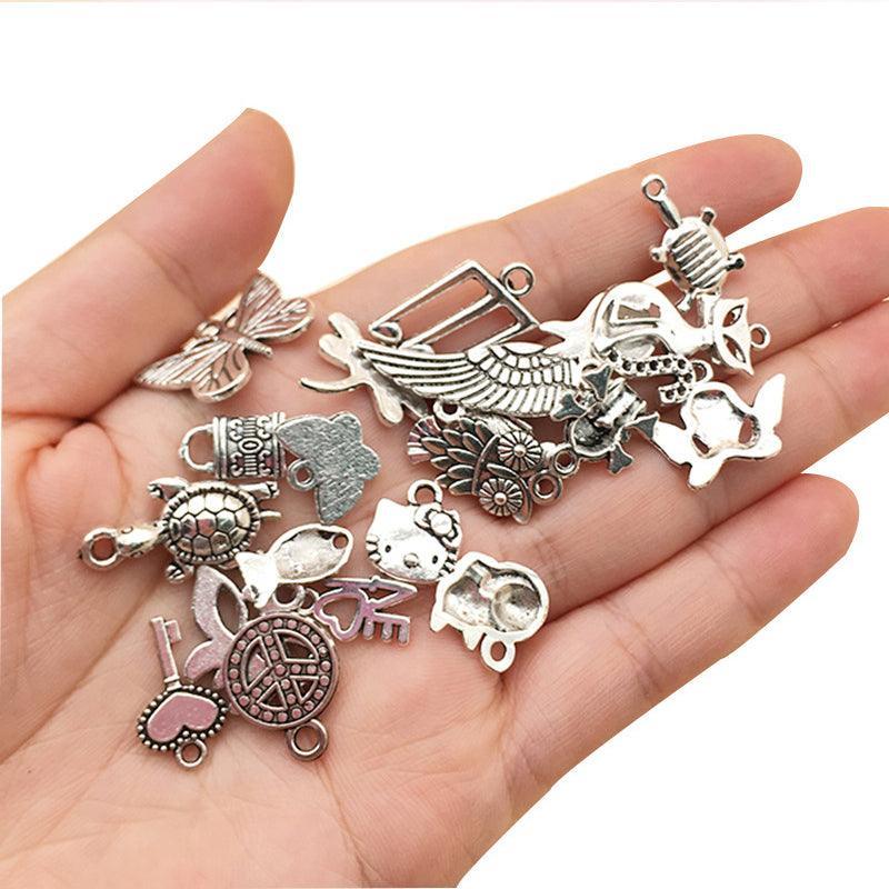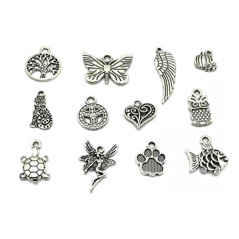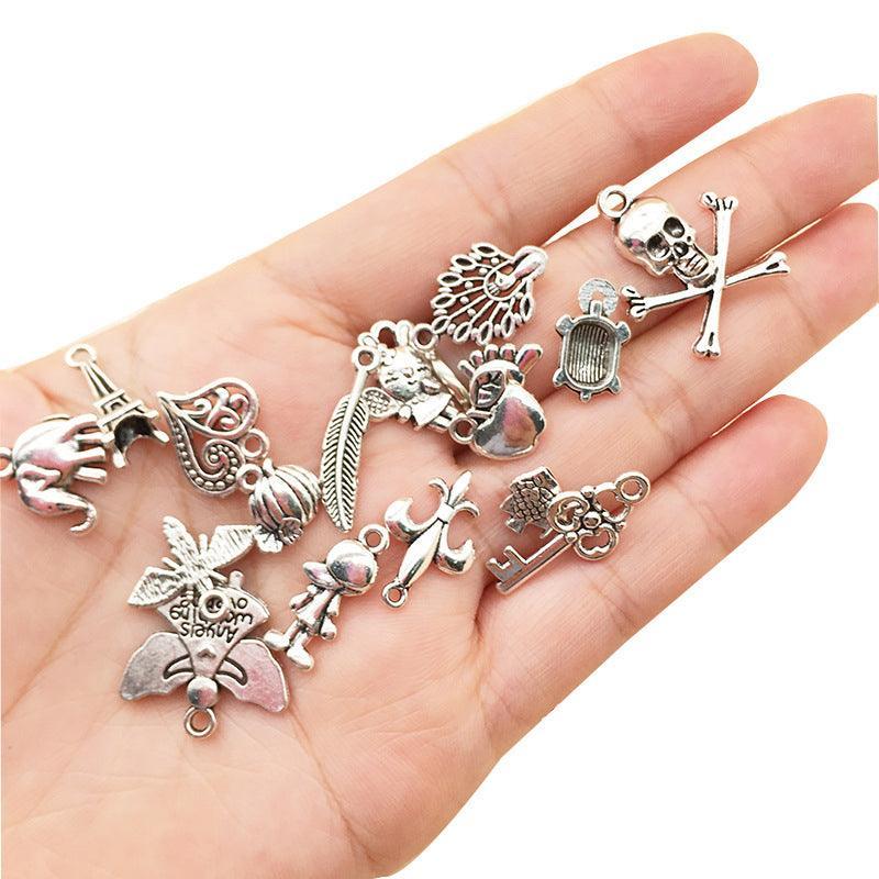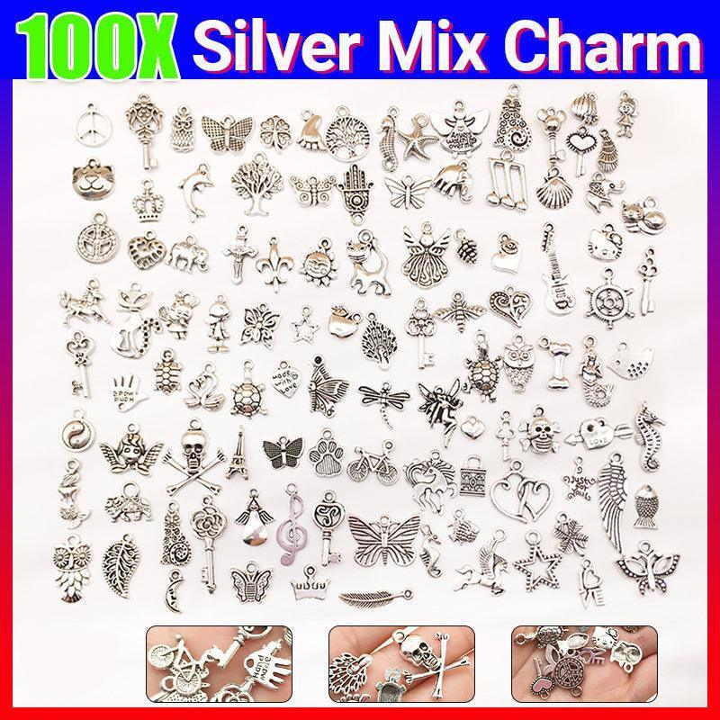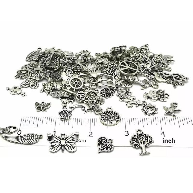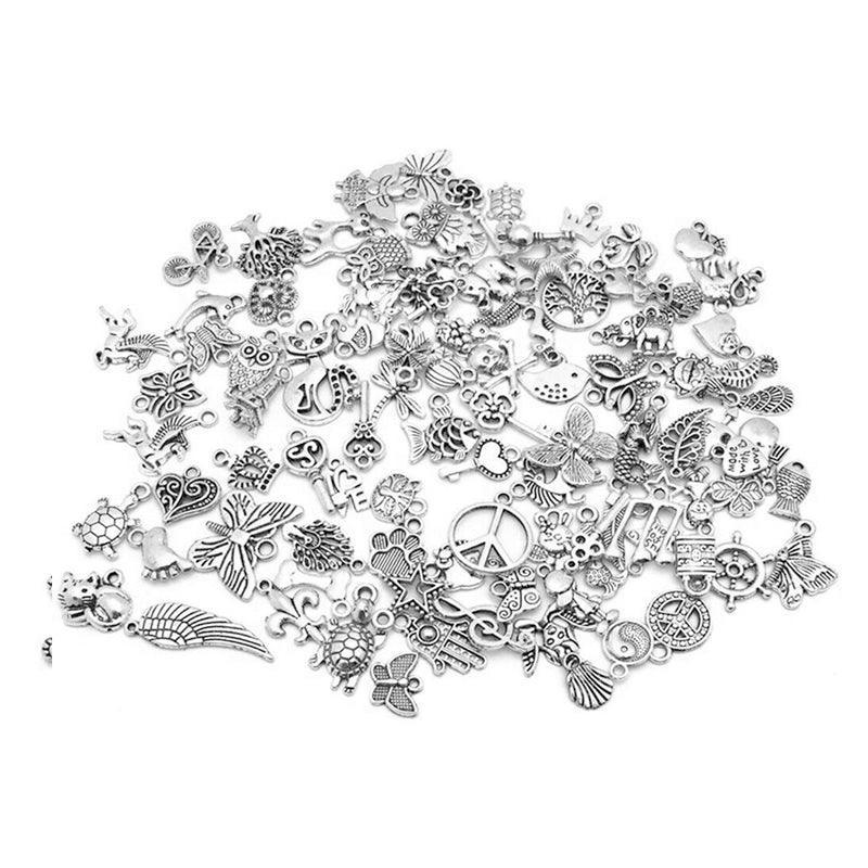 100Pcs Tibetan Silver Mixed Charms - DIY Jewelry Crafting Pendants