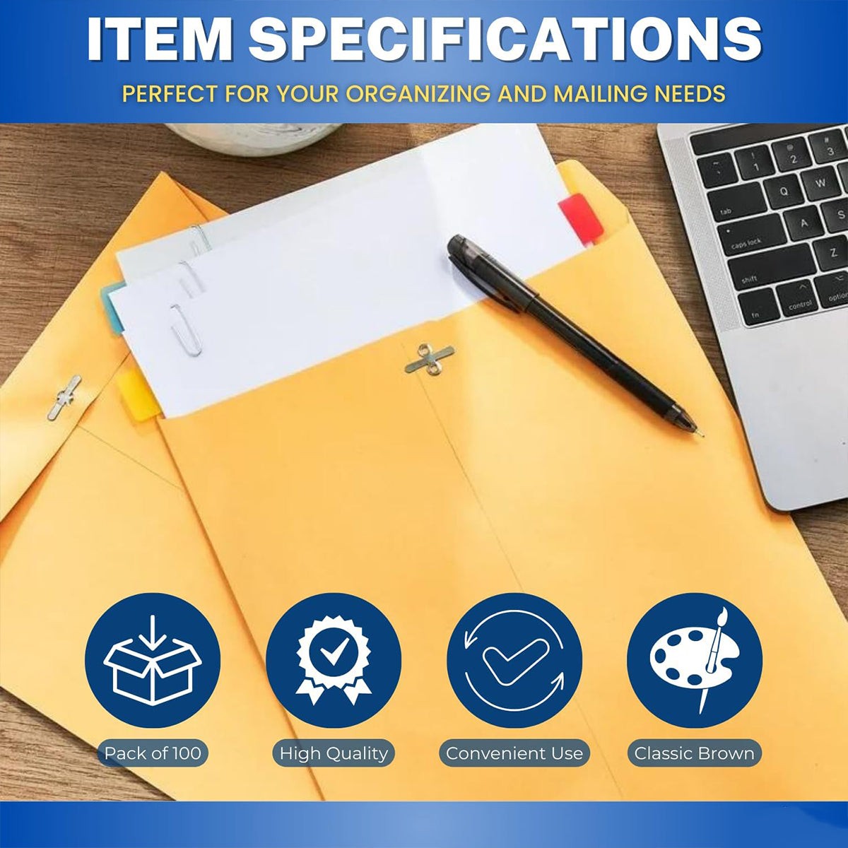 100pcs Kraft Envelopes 6x9in with Metal Clasp for Gift and Document Use