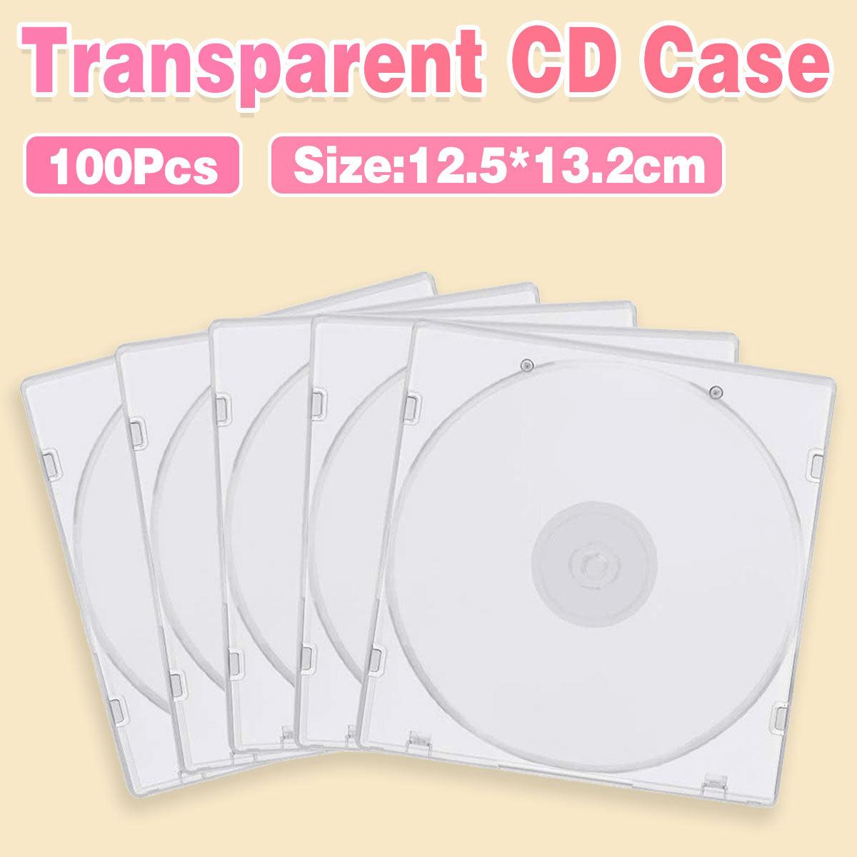 100pcs Transparent Square CD DVD Storage Box Protective Plastic Case for Discs