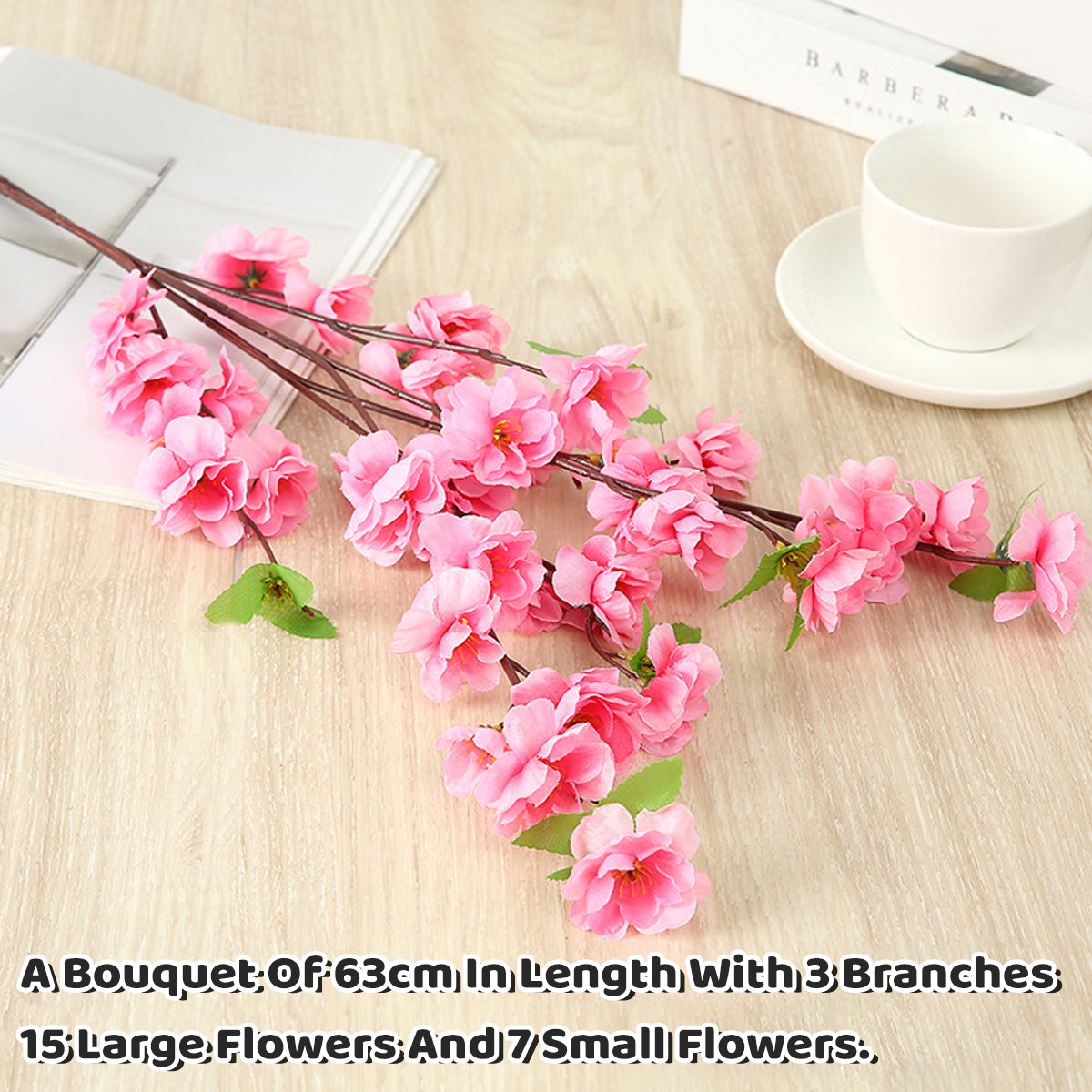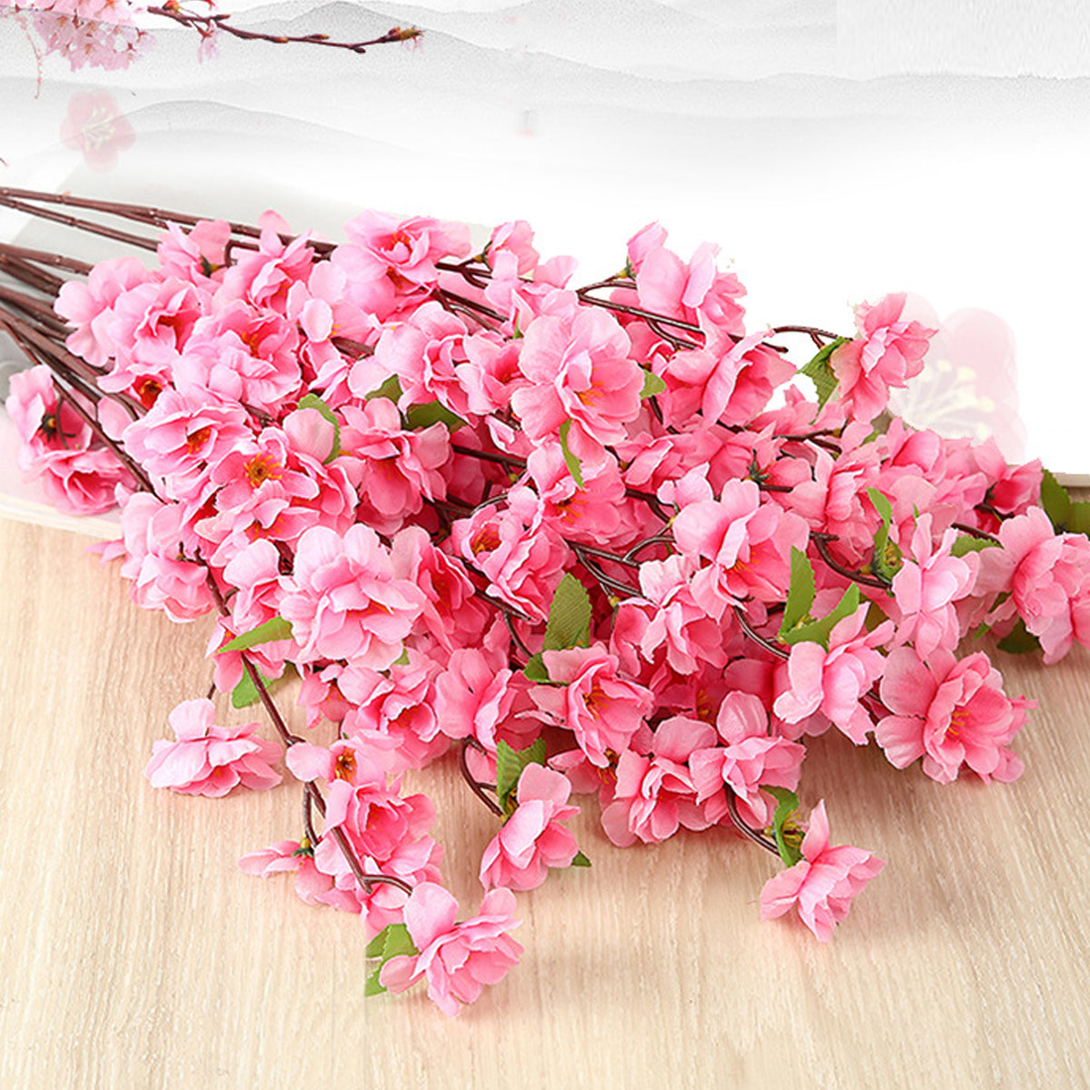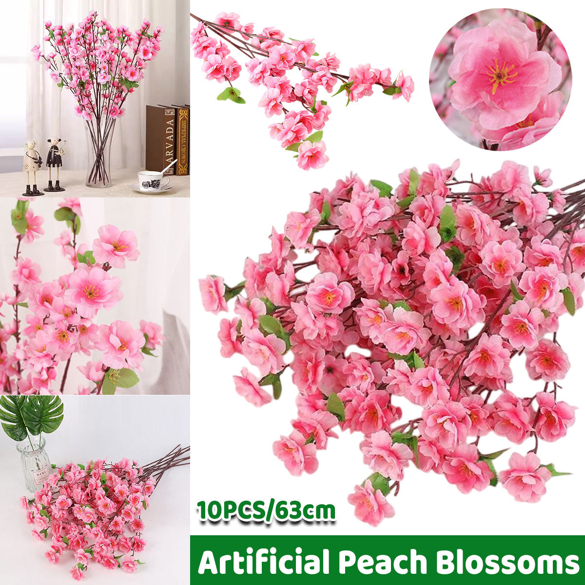 10PCS Artificial Peach Blossom Branches Realistic Pink Flower for Wedding Party