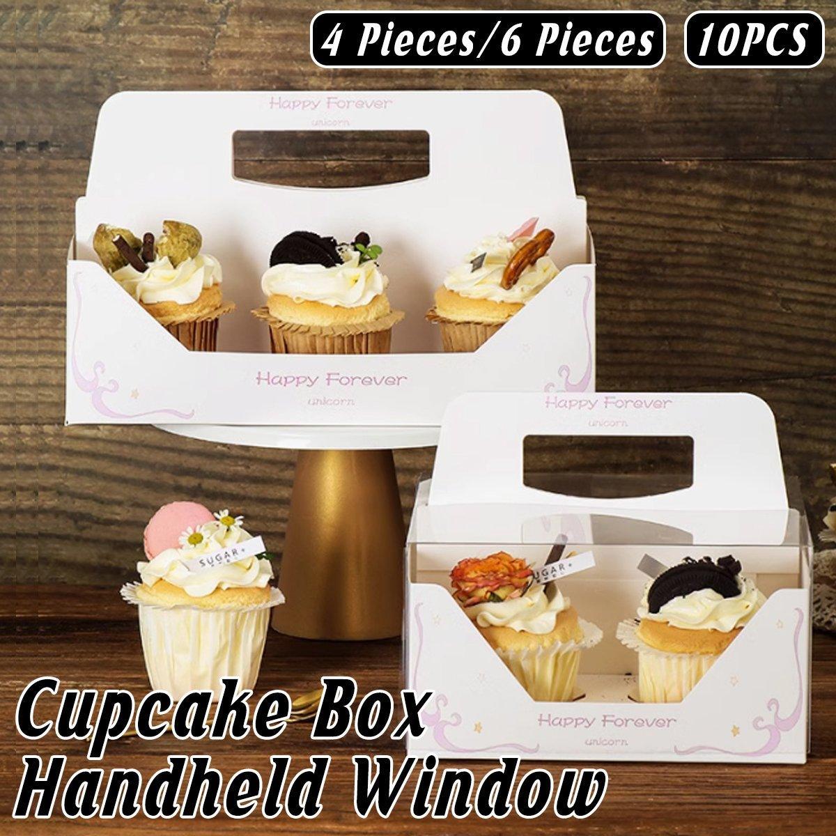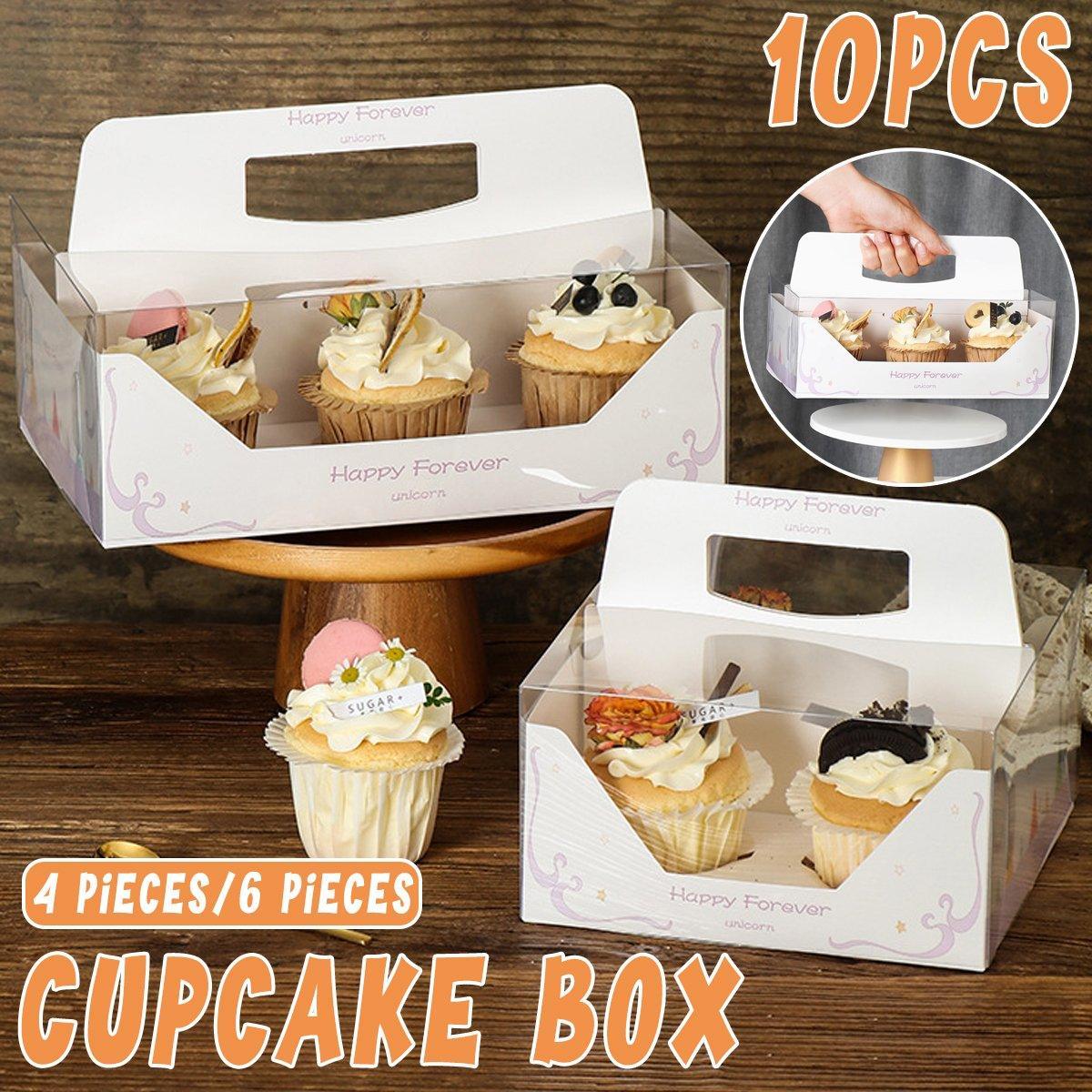 10PCS Clear Cupcake Box Portable Holder Muffin Egg Tart Cake Baking Packaging