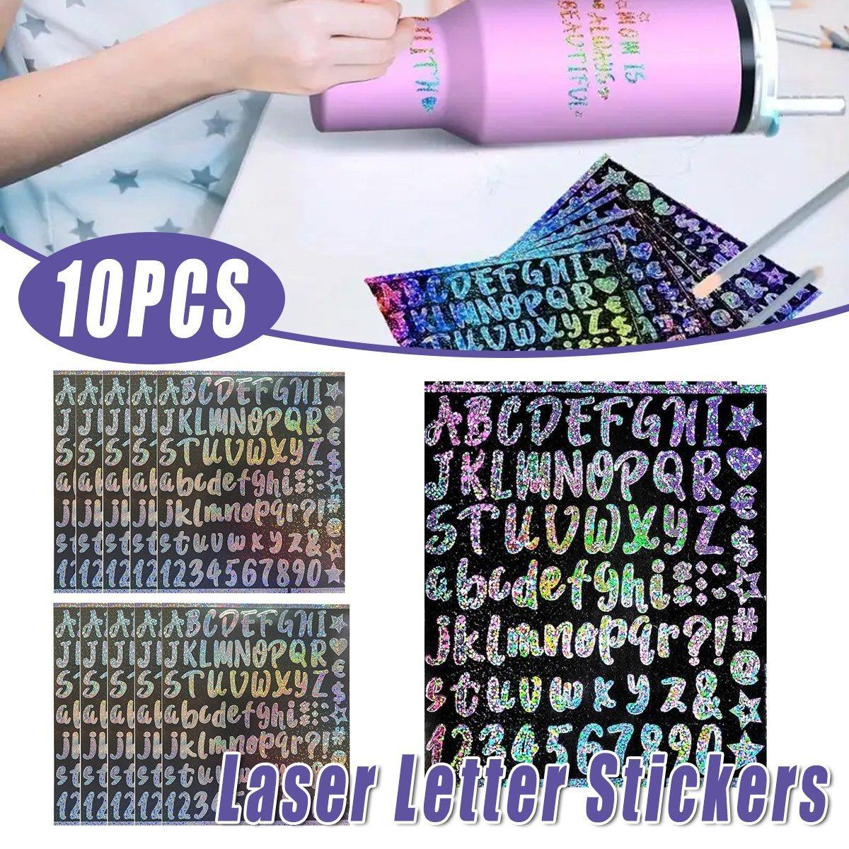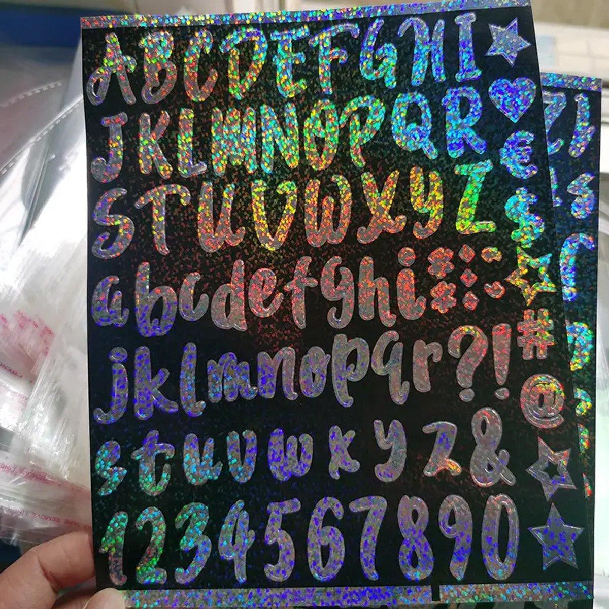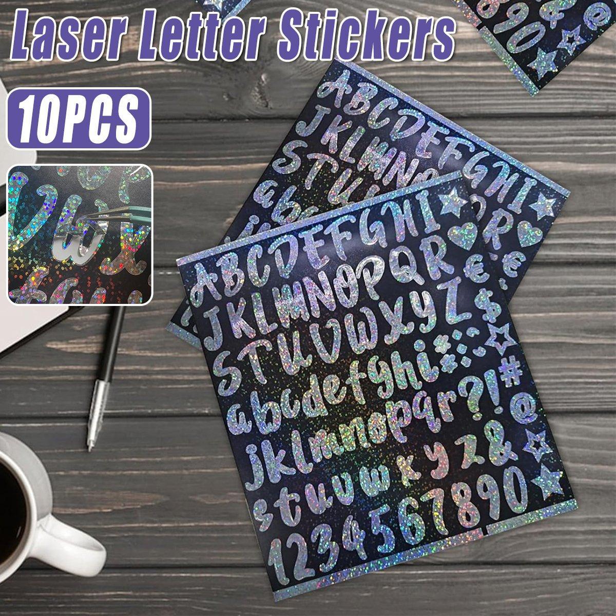 10pcs DIY Laser Alphanumeric Stickers Colourful Flash Labels Craft Decoration