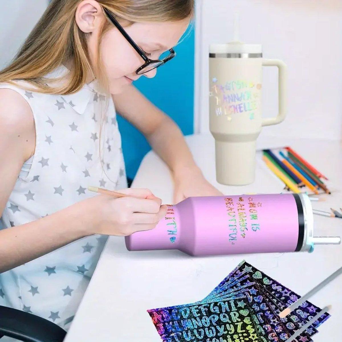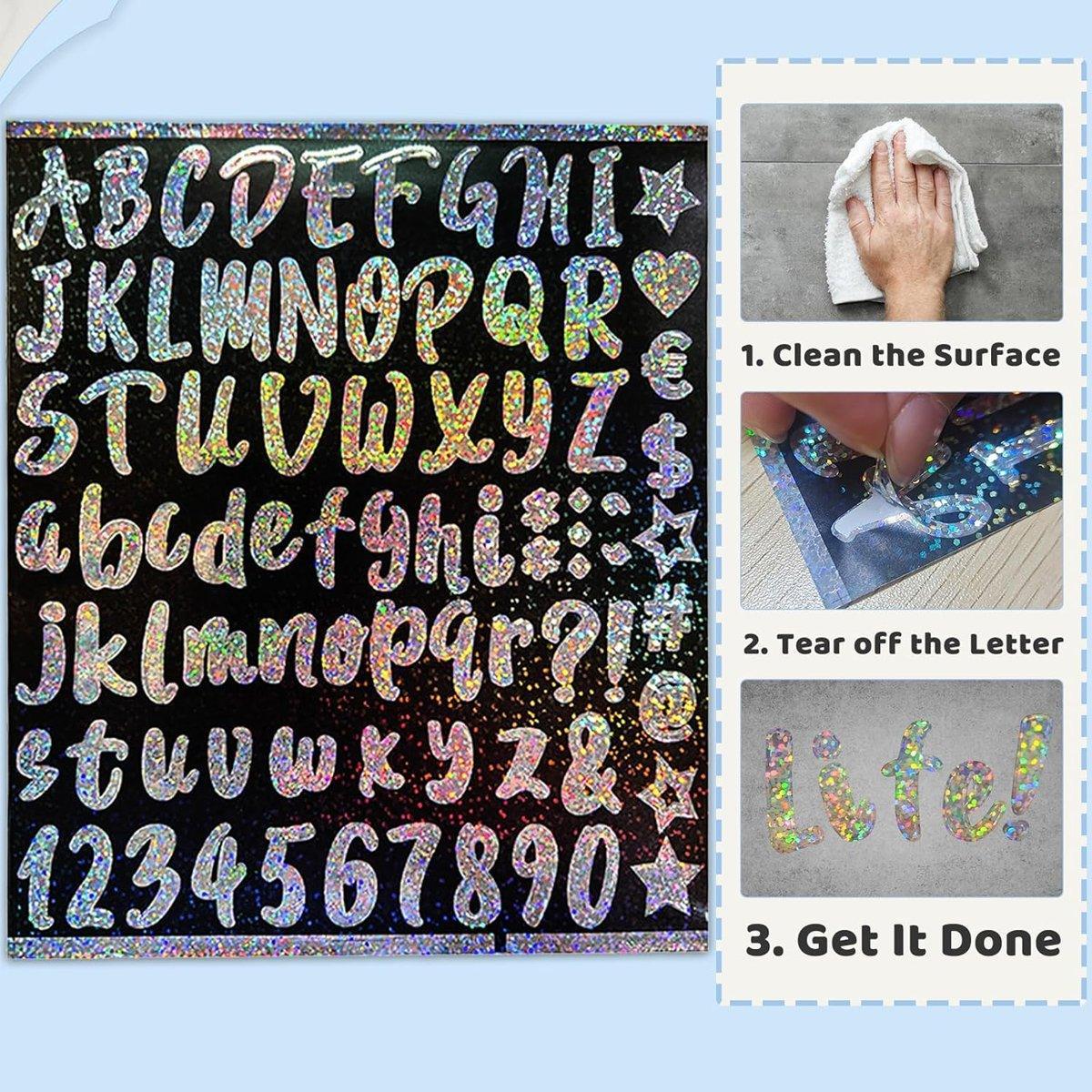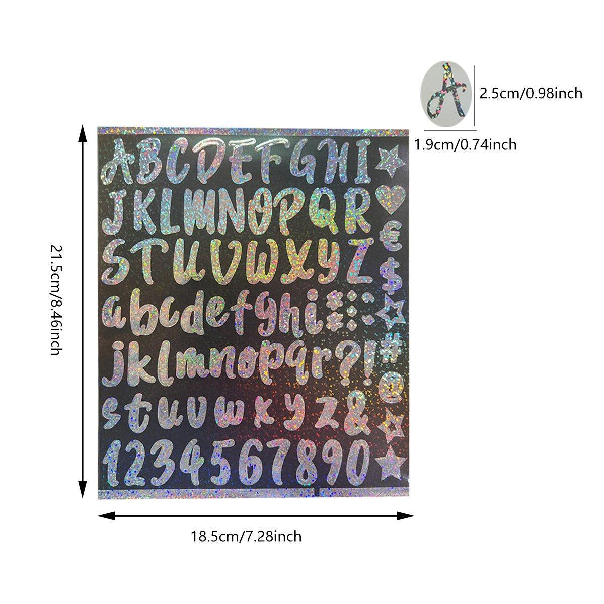 10pcs DIY Laser Alphanumeric Stickers Colourful Flash Labels Craft Decoration