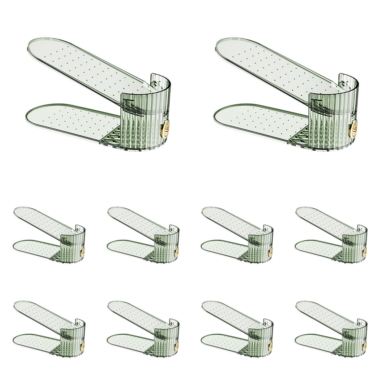 10pcs Plastic Shoe Rack Double Layer Adjustable Simple Shoe Storage Organizer