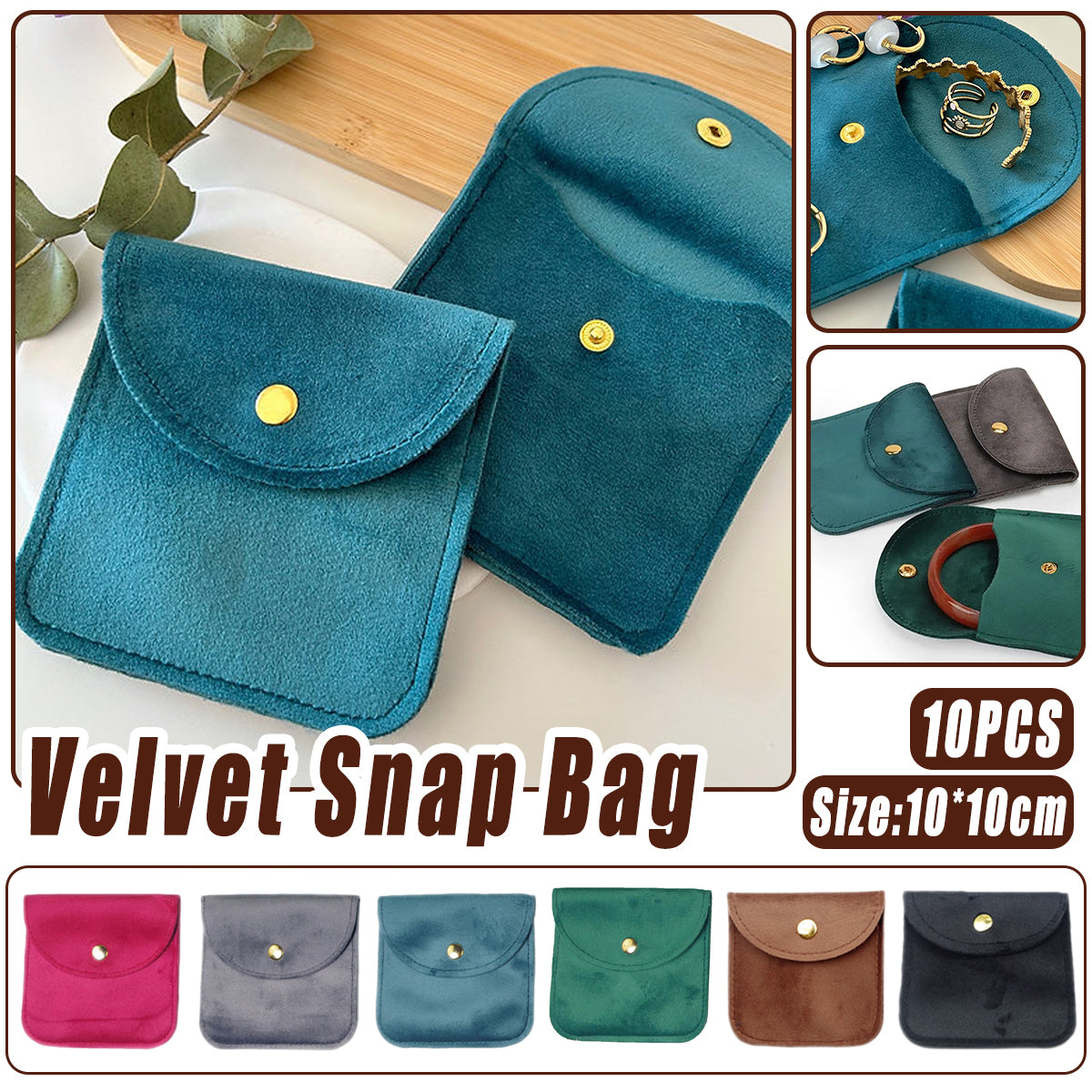 10pcs Velvet Jewelry Pouch Button Closure Thick Soft Ring Necklace Storage Bag