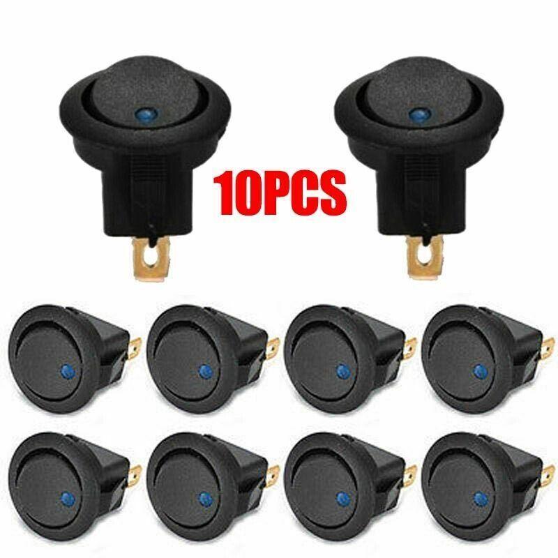 10 Pack 12V Blue LED Rocker Switch for Car Boat and Truck