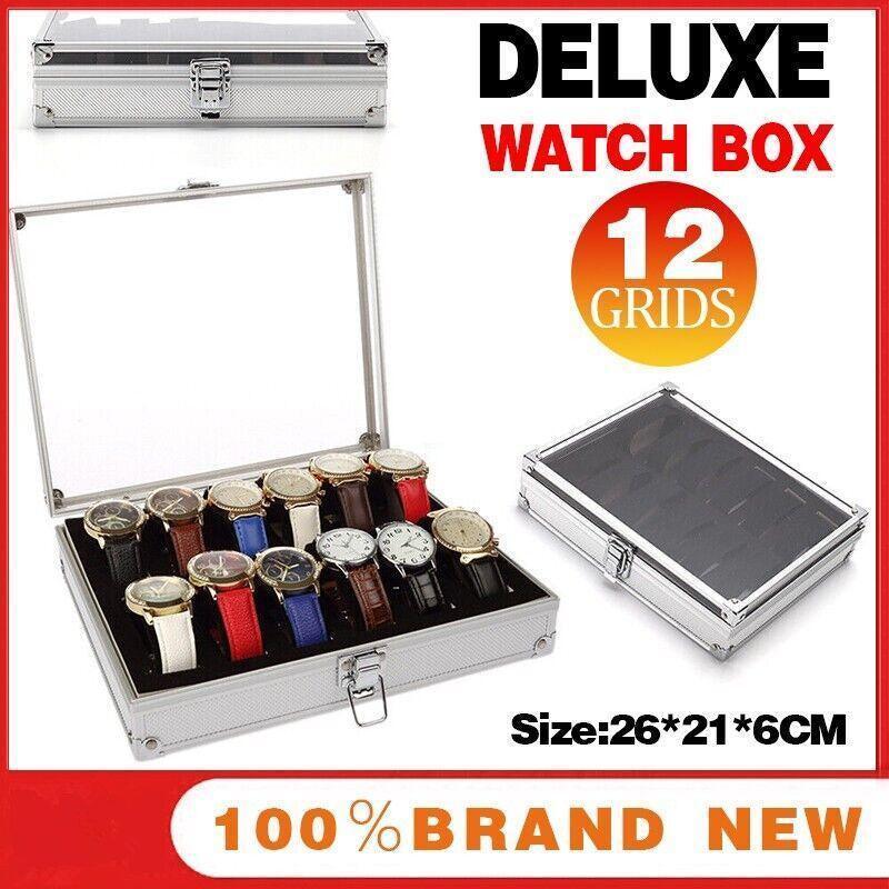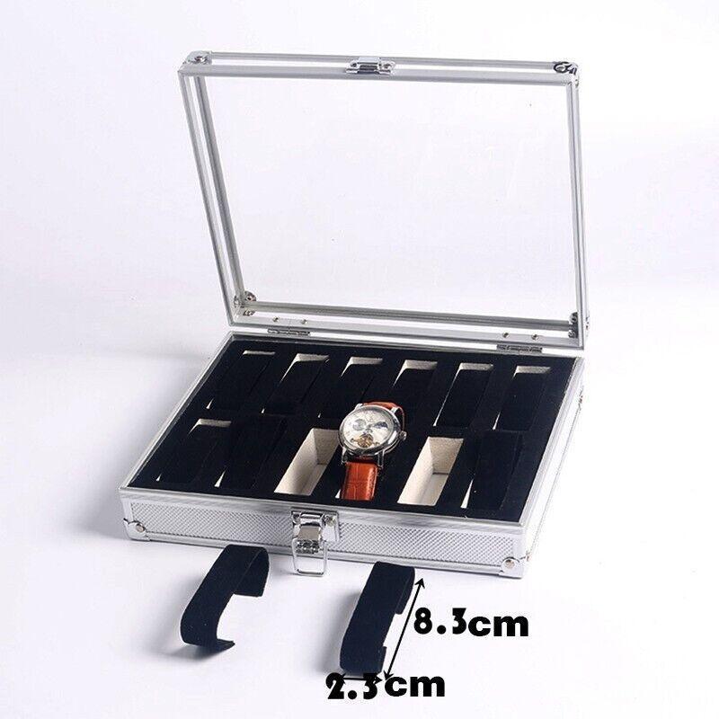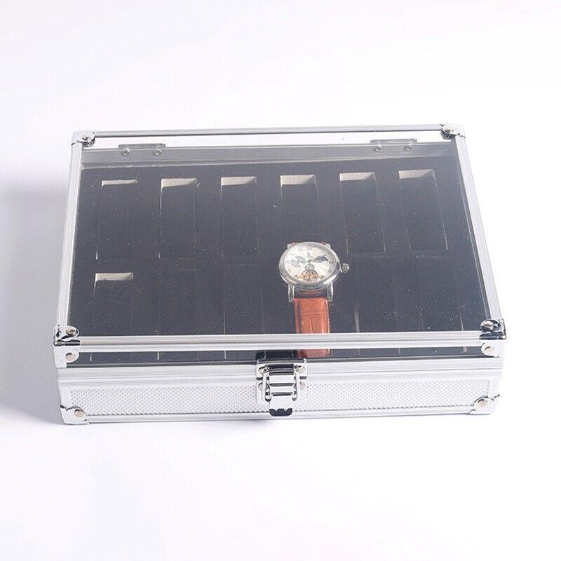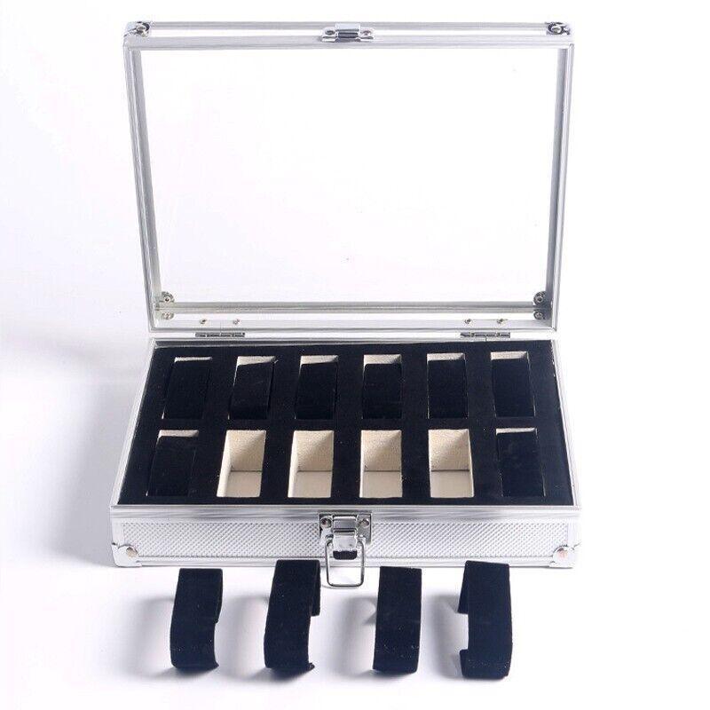 12 Grids Carbon Fiber Aluminum Watch Box Storage Case Holder Display