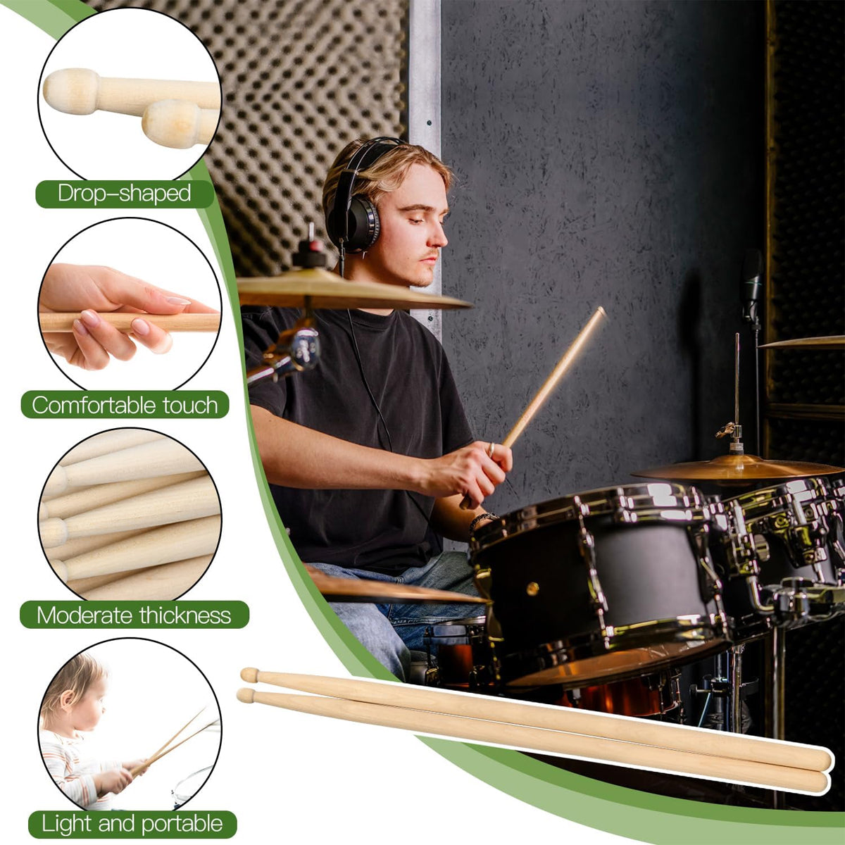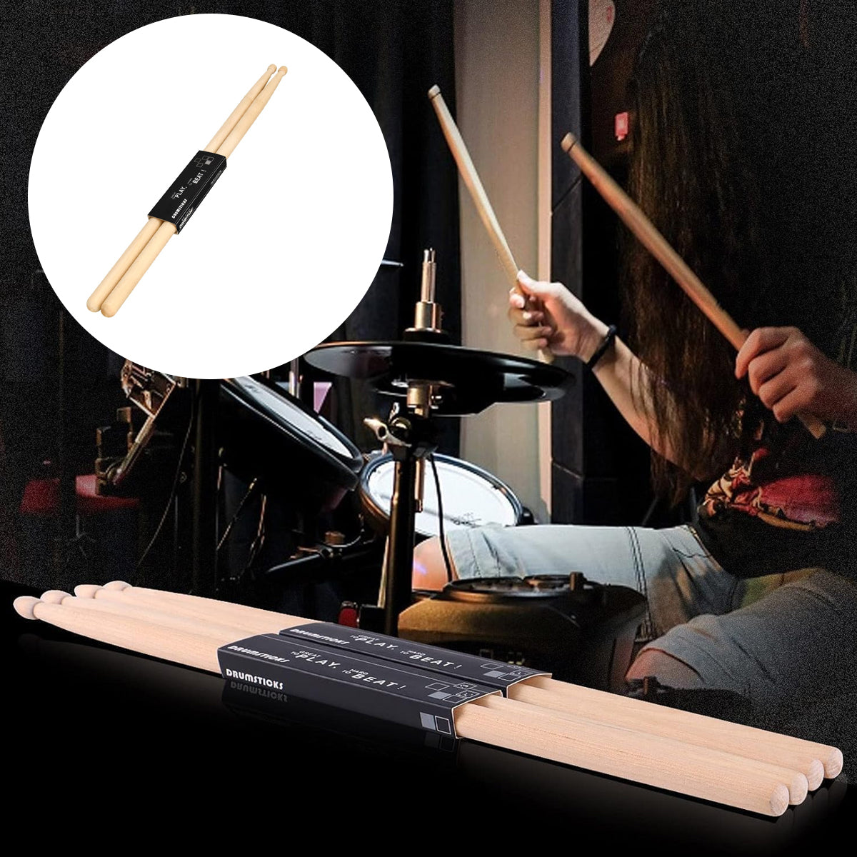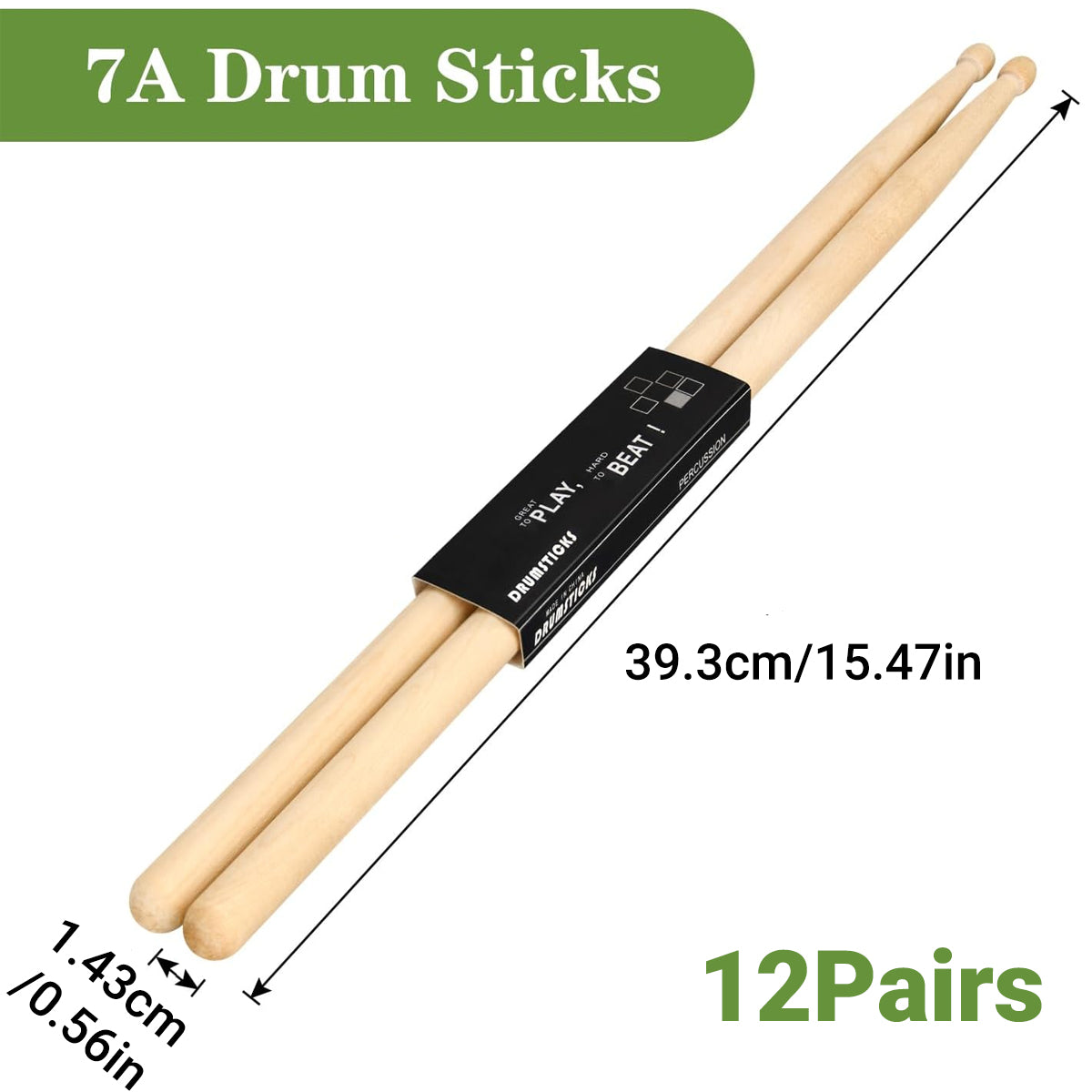12 Pairs Drum 7A Professional Practice Solid Wood Drum Stick