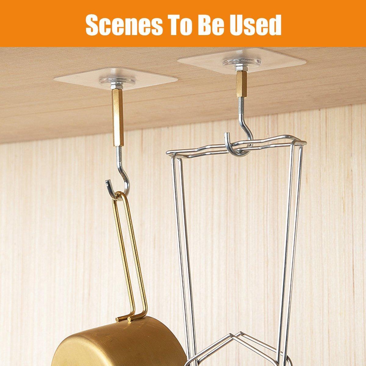 12 PCS Heavy Duty Self Adhesive Hooks Stainless Steel Ceiling Hooks for Home