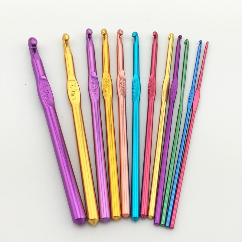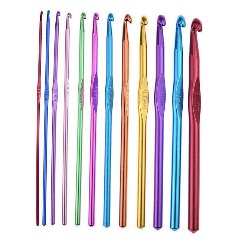 12 Size Multi-Coloured Aluminium Crochet Hooks Set 2-8mm