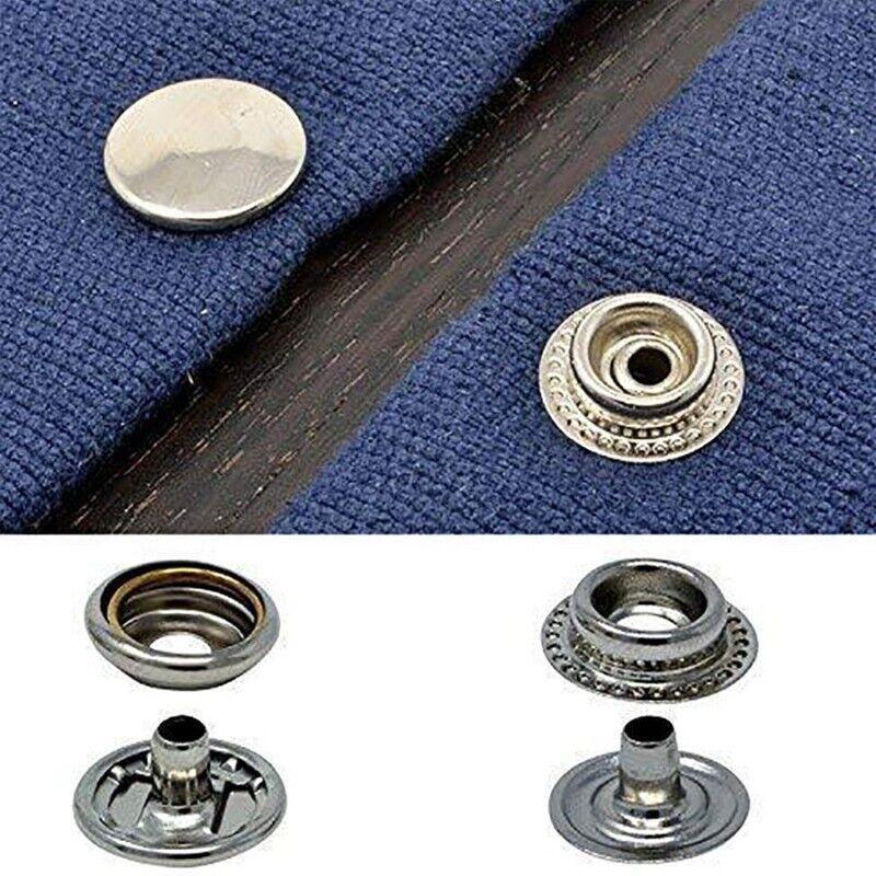 120PCS 15mm Stainless Steel Snap Fasteners Press Studs Cap Button Boat