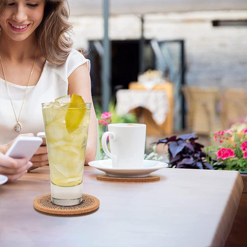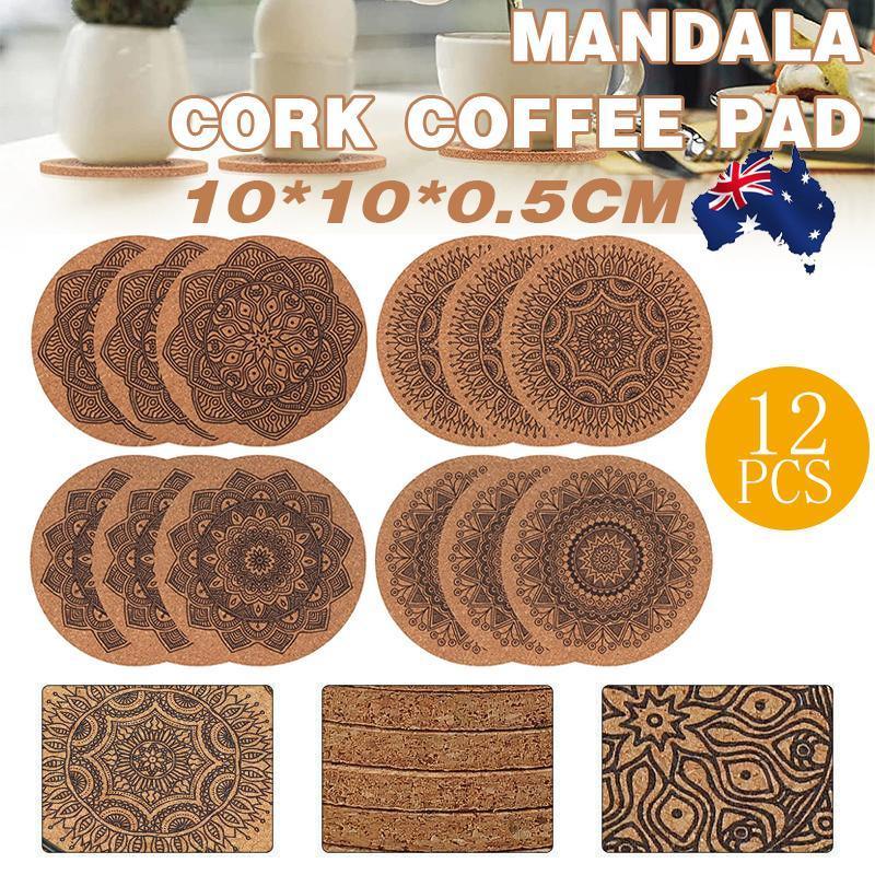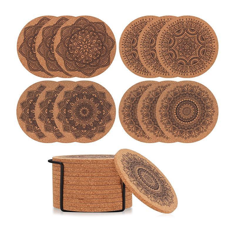 12Pc Cup Coasters Coffee Pad With Rack Nordic Mandala Round Cork Coaster
