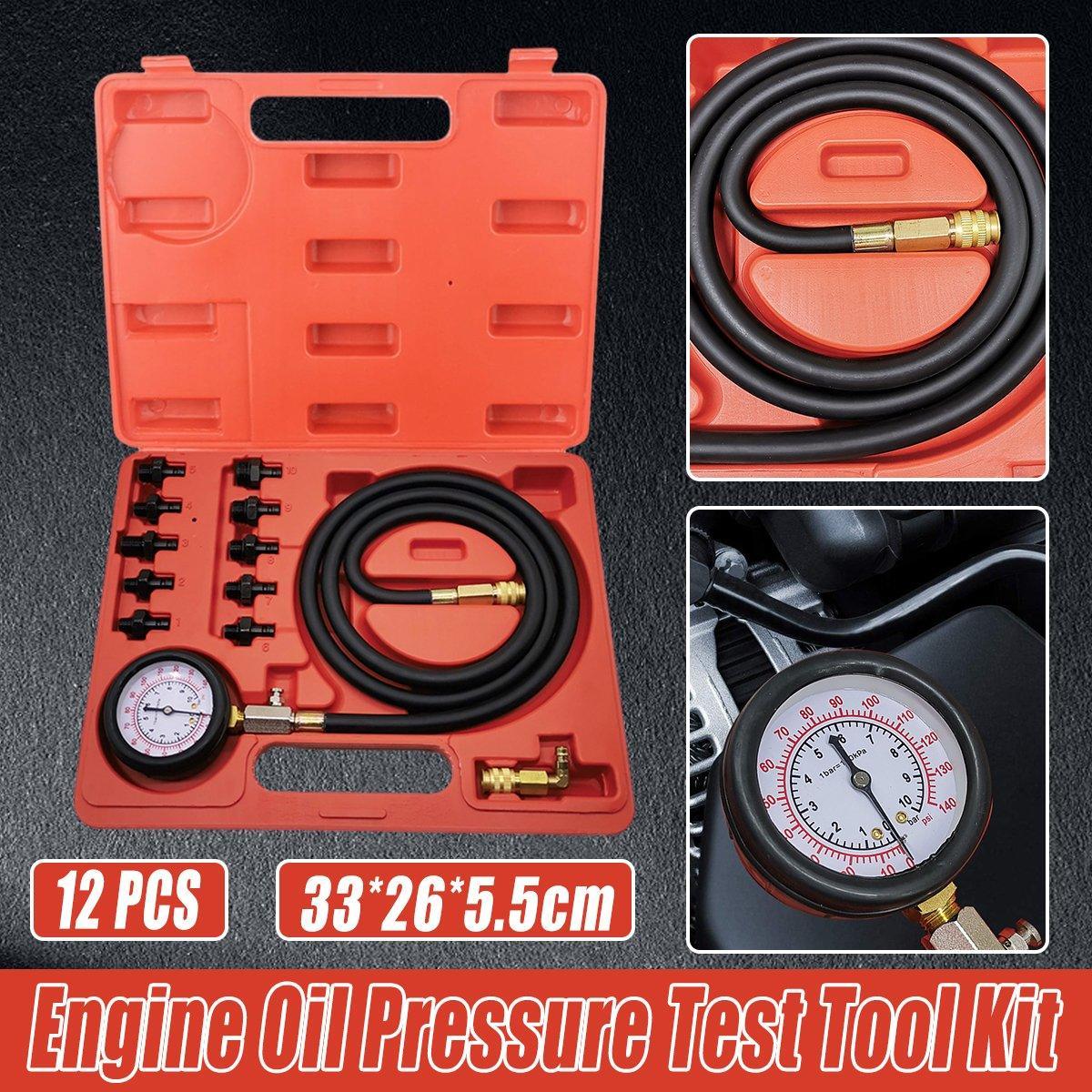 12pc Engine Oil Pressure Testing Gauge Diagnostic Auto Tool Set Kit Tester