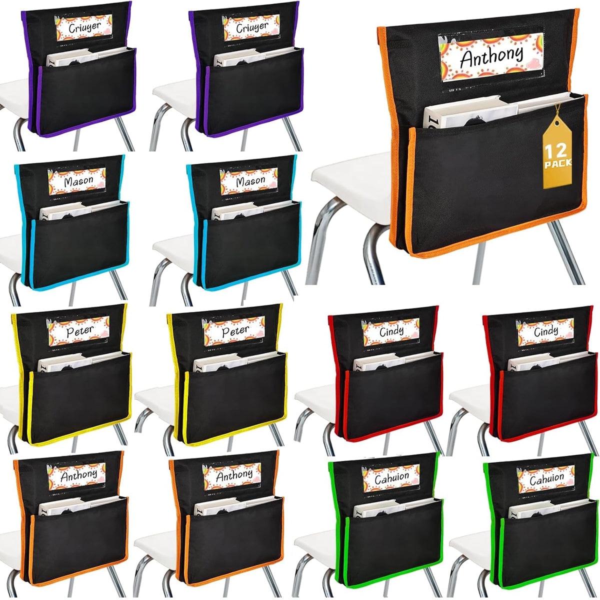 12PCS Classroom Student Chair Back Storage Bag Durable Oxford Fabric Waterproof