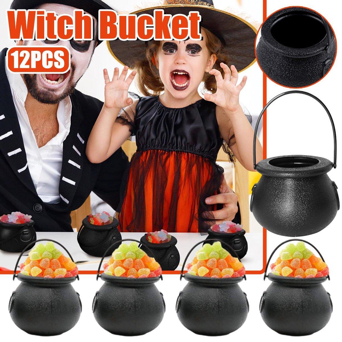 12PCS Halloween Witch Lantern Black Flame Candy Bucket Portable Props Decor