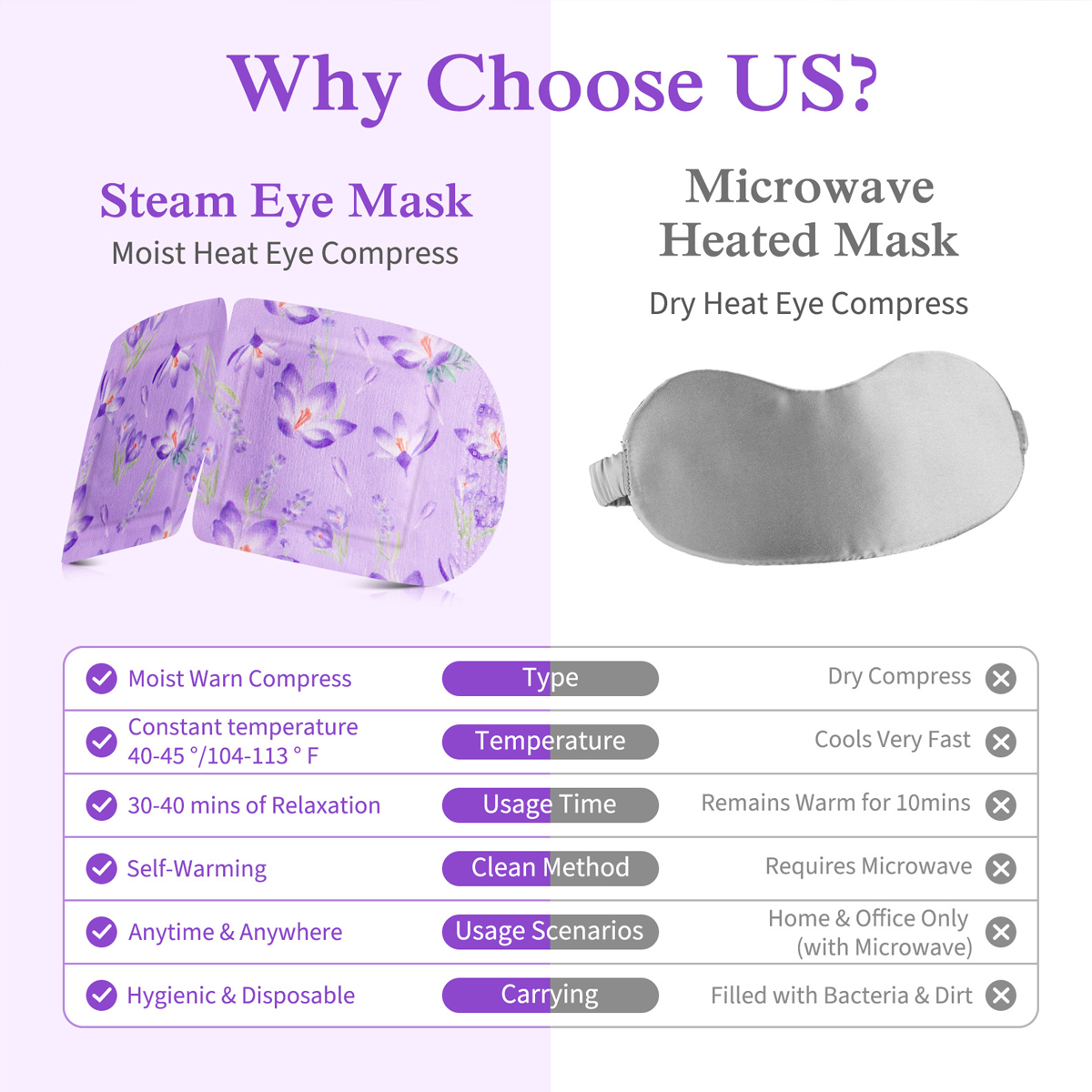 12PCS Lavender Steam Eye Mask Disposable Heated Relaxing Warm Compress Pads