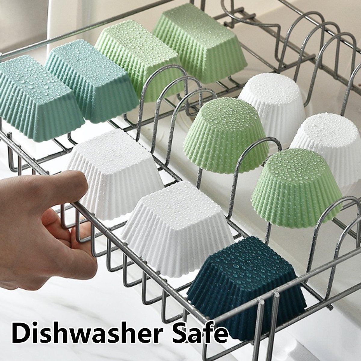 12PCS Silicone Baking Cupcake Muffin Molds Nonstick Square Round Reusable Cake