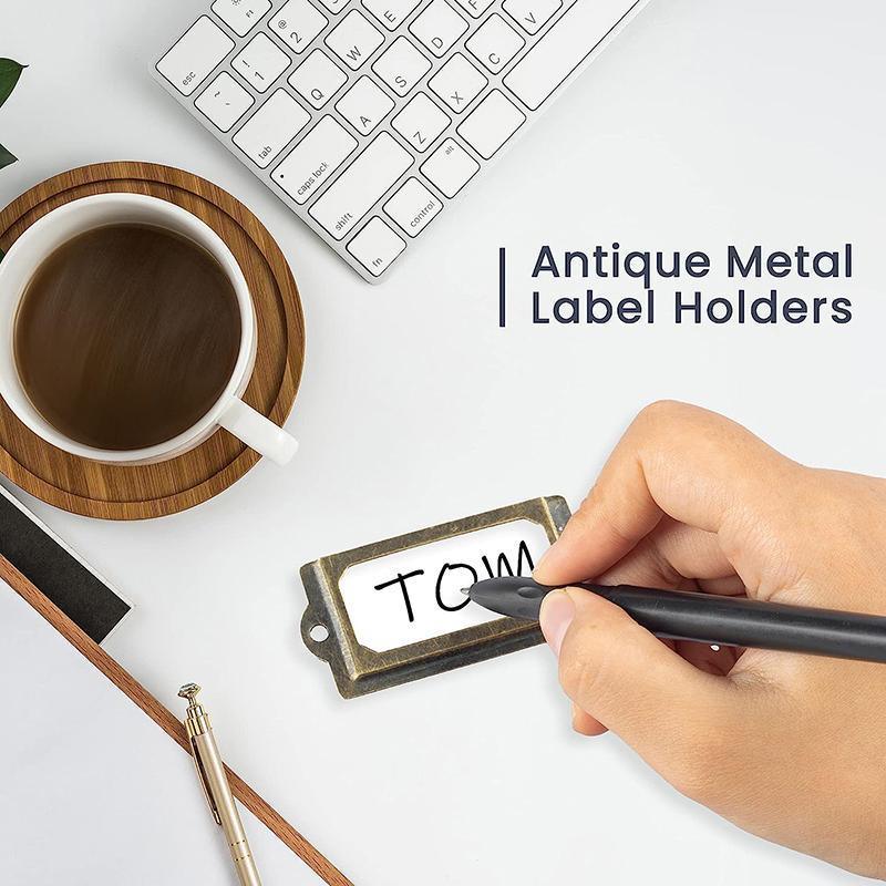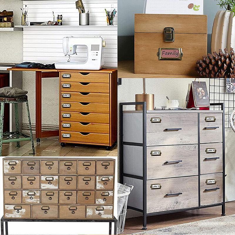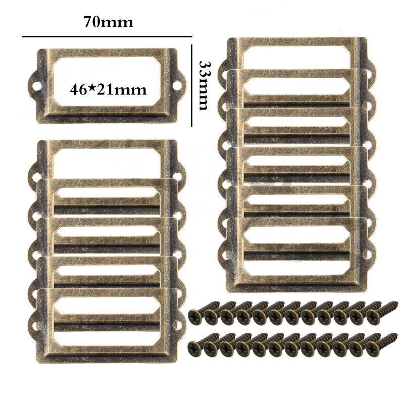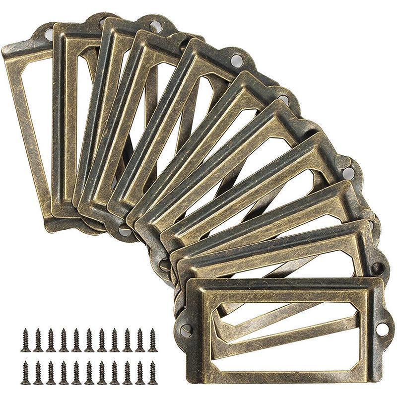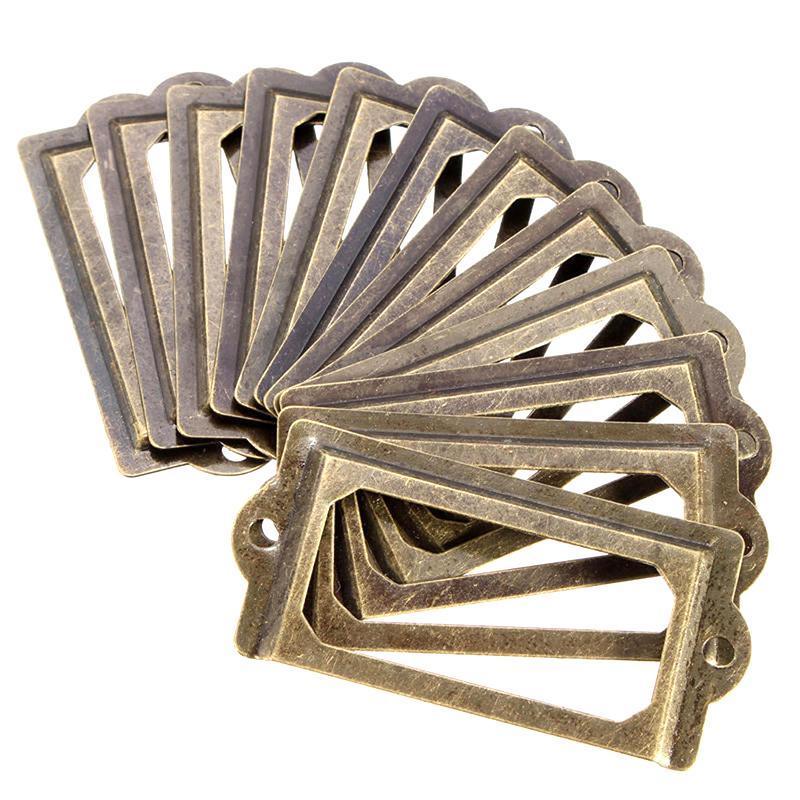 12X Brass Cabinet Drawer Label Pull File Name Card Frame Holder Handle