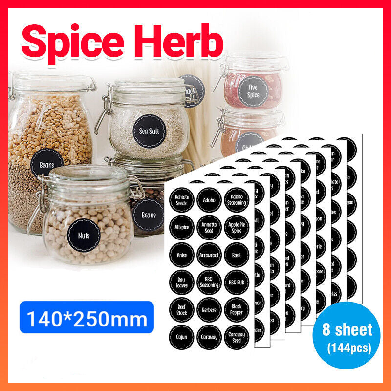 144PCS Spice Herb Jar Labels Waterproof Pantry Stickers for Kitchen Storage Jars