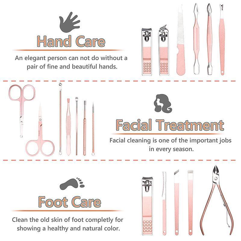 18 Piece Rose Gold Stainless Steel Manicure Pedicure Set With Travel Case
