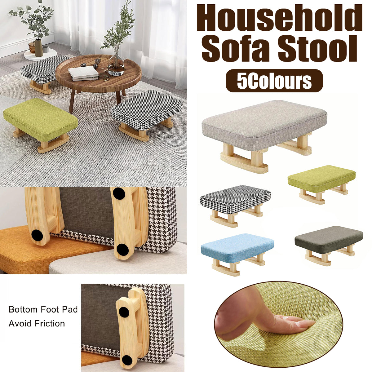 1PC Small Solid Wood Fabric Stool Creative Retro Footstool for Living Room Seat