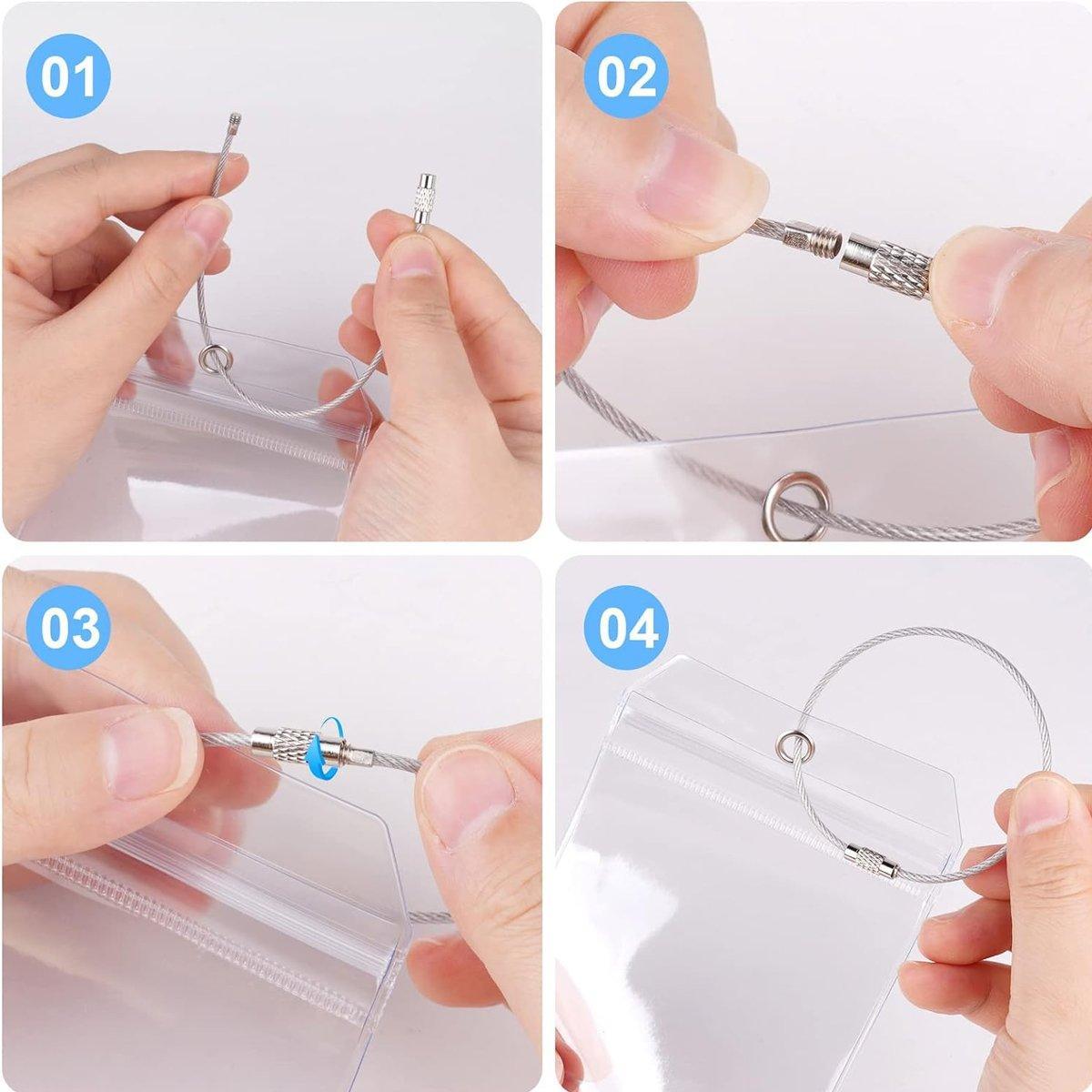 2/10PCS Cruise Ship Luggage Tags Holders Zip Pouch Keyring Steel Wire Cable