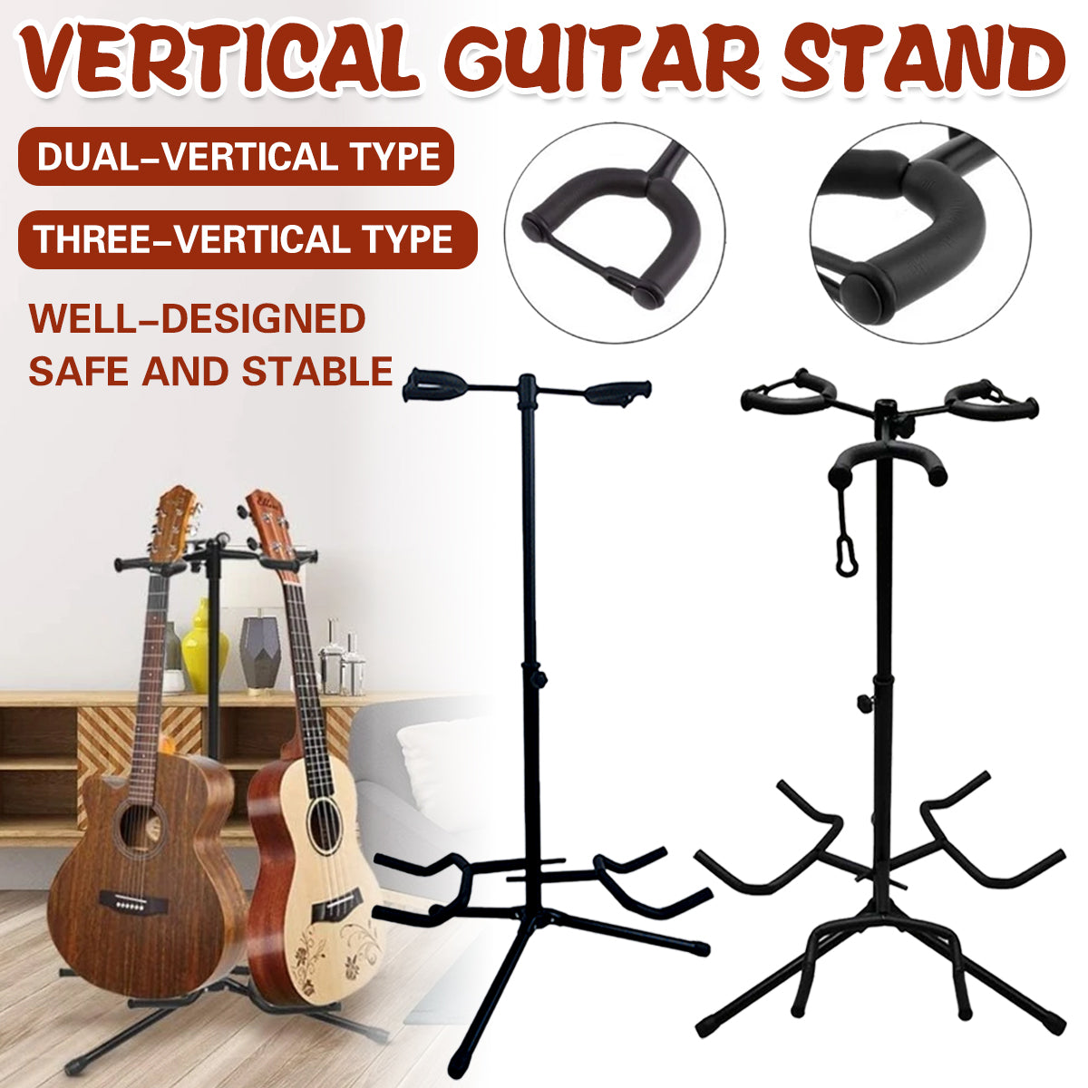 2/3Head Guitar Stand with Height Adjustment Foldable Holder Guitar Stand Bass