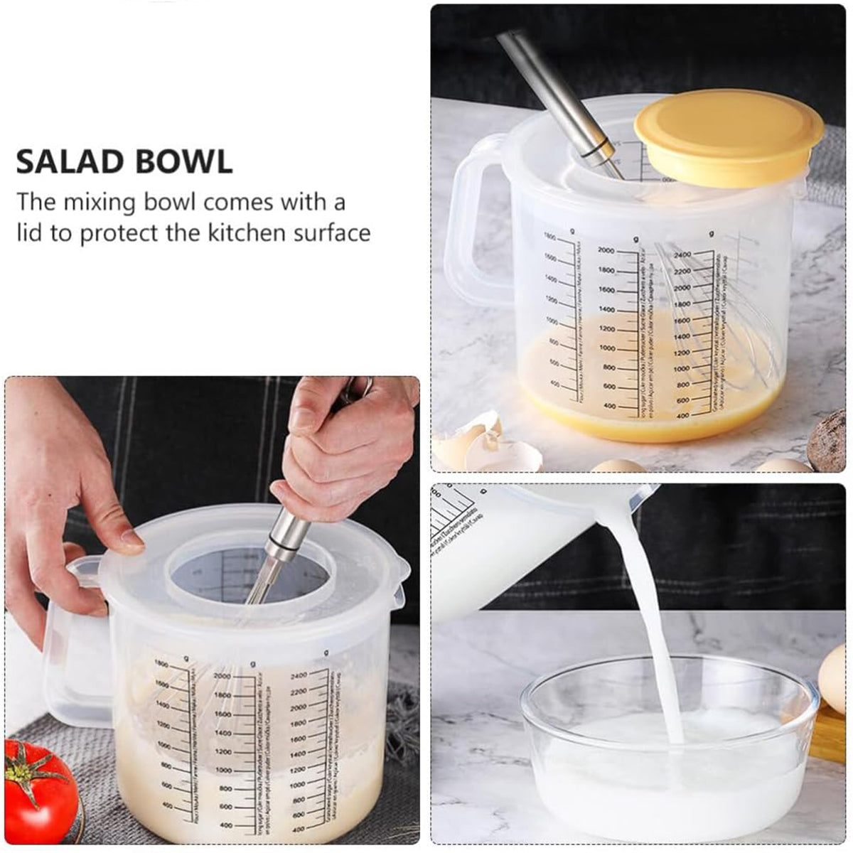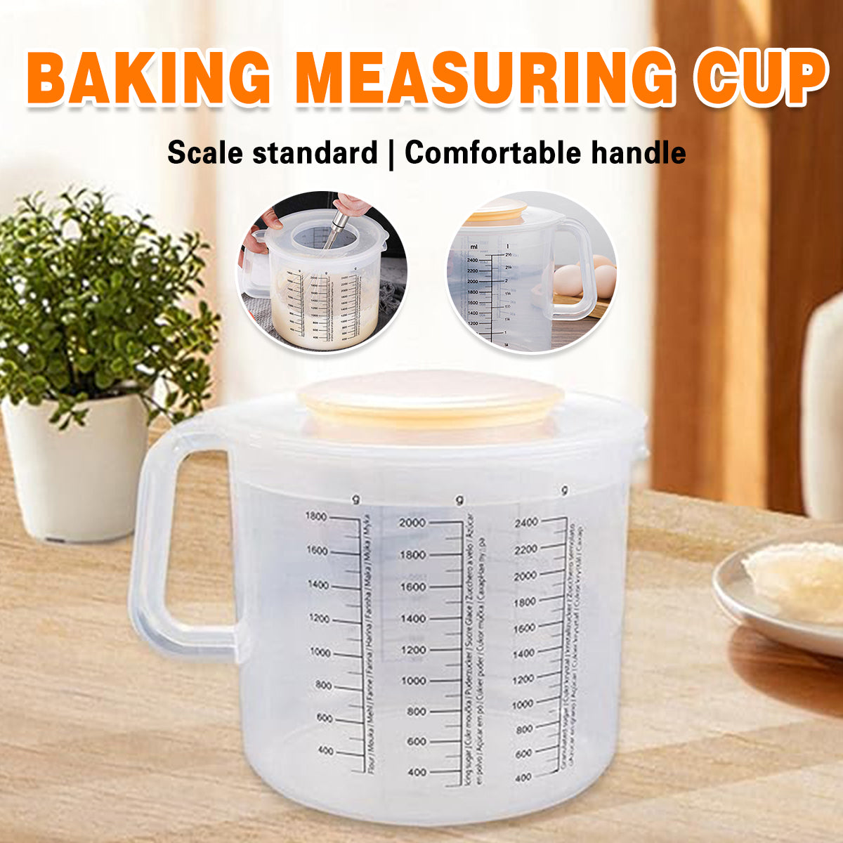 2.5L Plastic Baking Measuring Cup Splash Proof Graduated Mixing Bowl With Lid