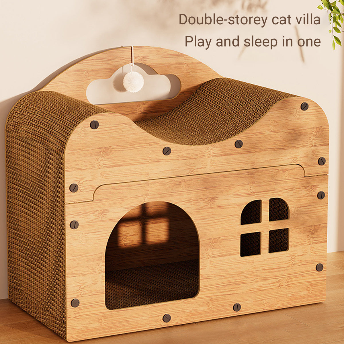 2 in 1 Cat Bed Cat Scratcher Cat House Kitten Sleeping Bed Pet Furniture Cat