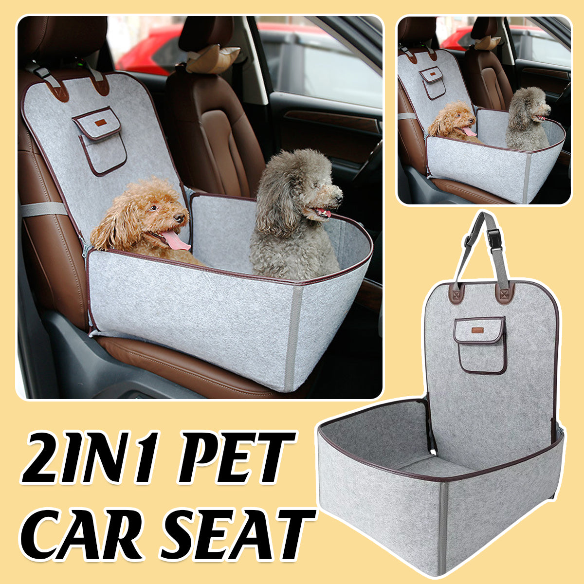 2 in 1 Pet Car Seat Waterproof Nonslip Durable for Dogs Cats Protective Seat Mat