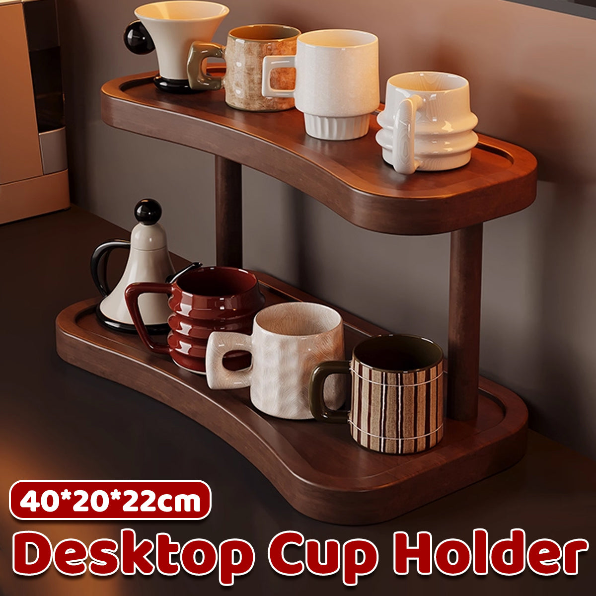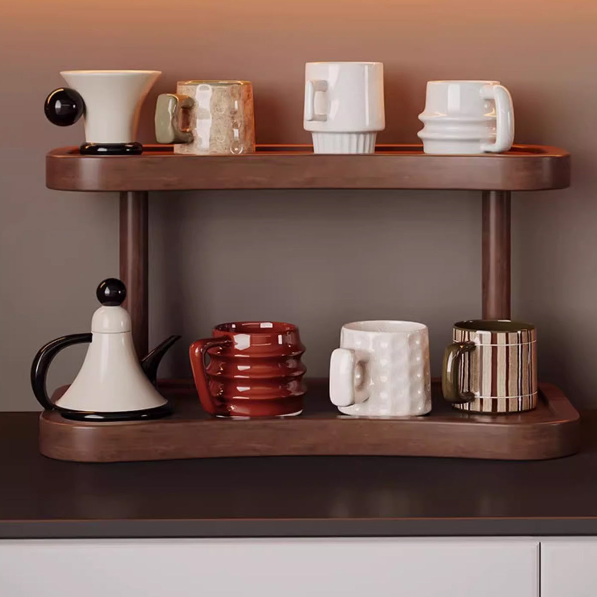 2 Tier Cup Holder Storage Rack Countertop for Kitchen Mugs Teacups Organizer
