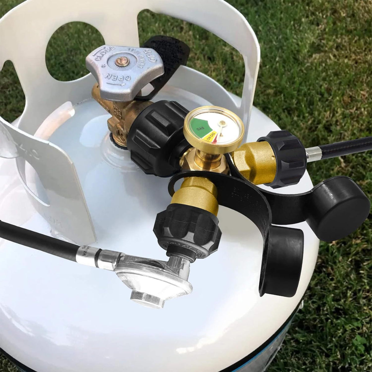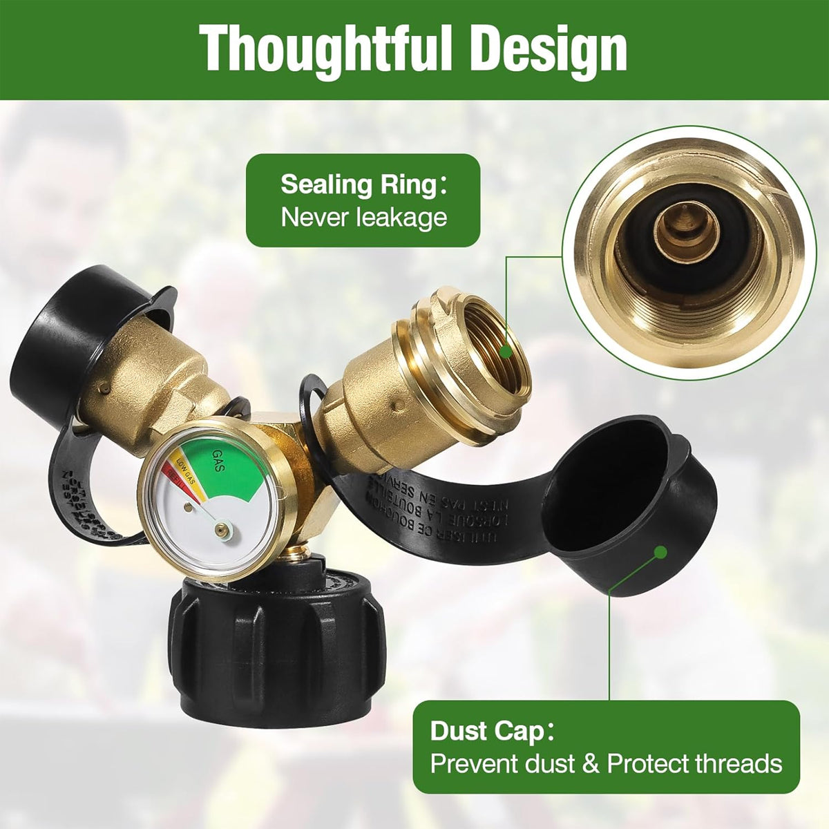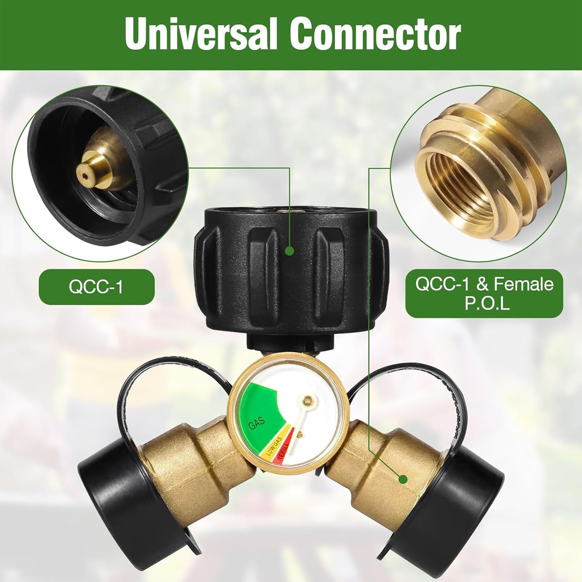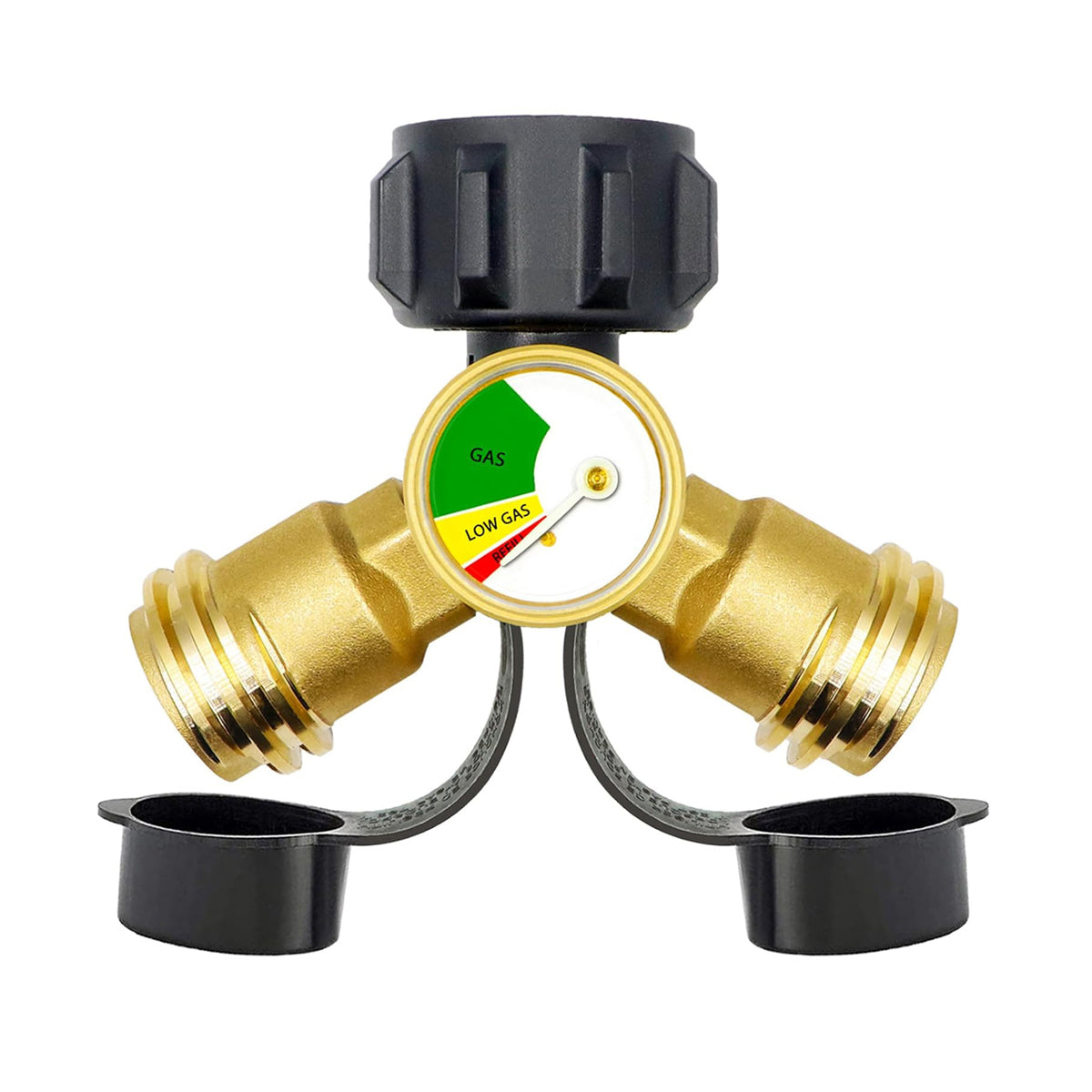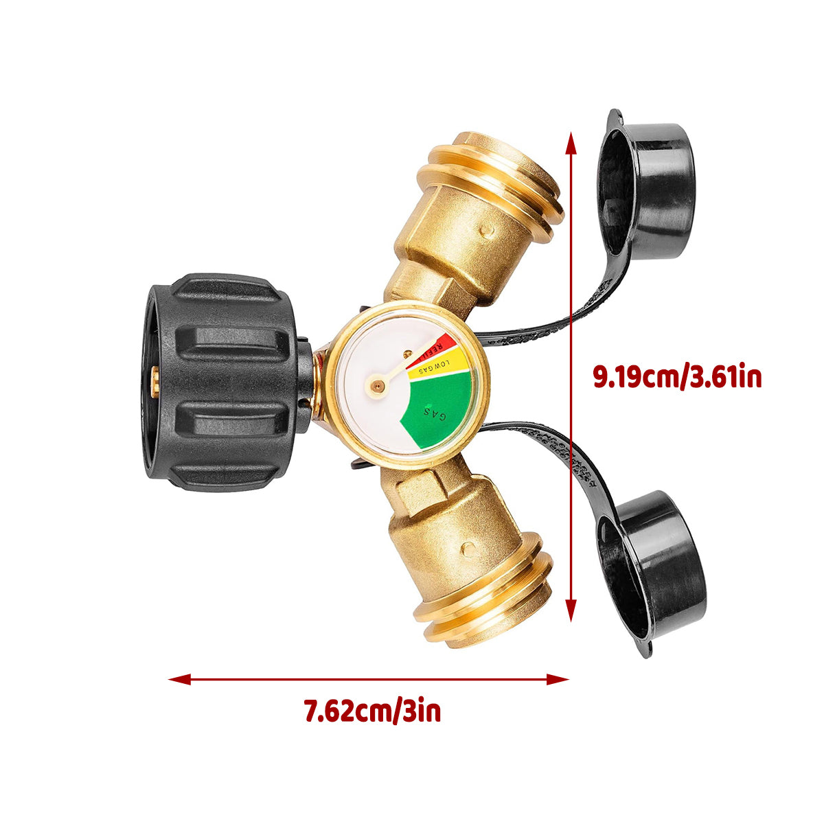 2-Way LPG Adapter-Propane Distributor Propane Tank Y-Splitter Adapter With Gauge