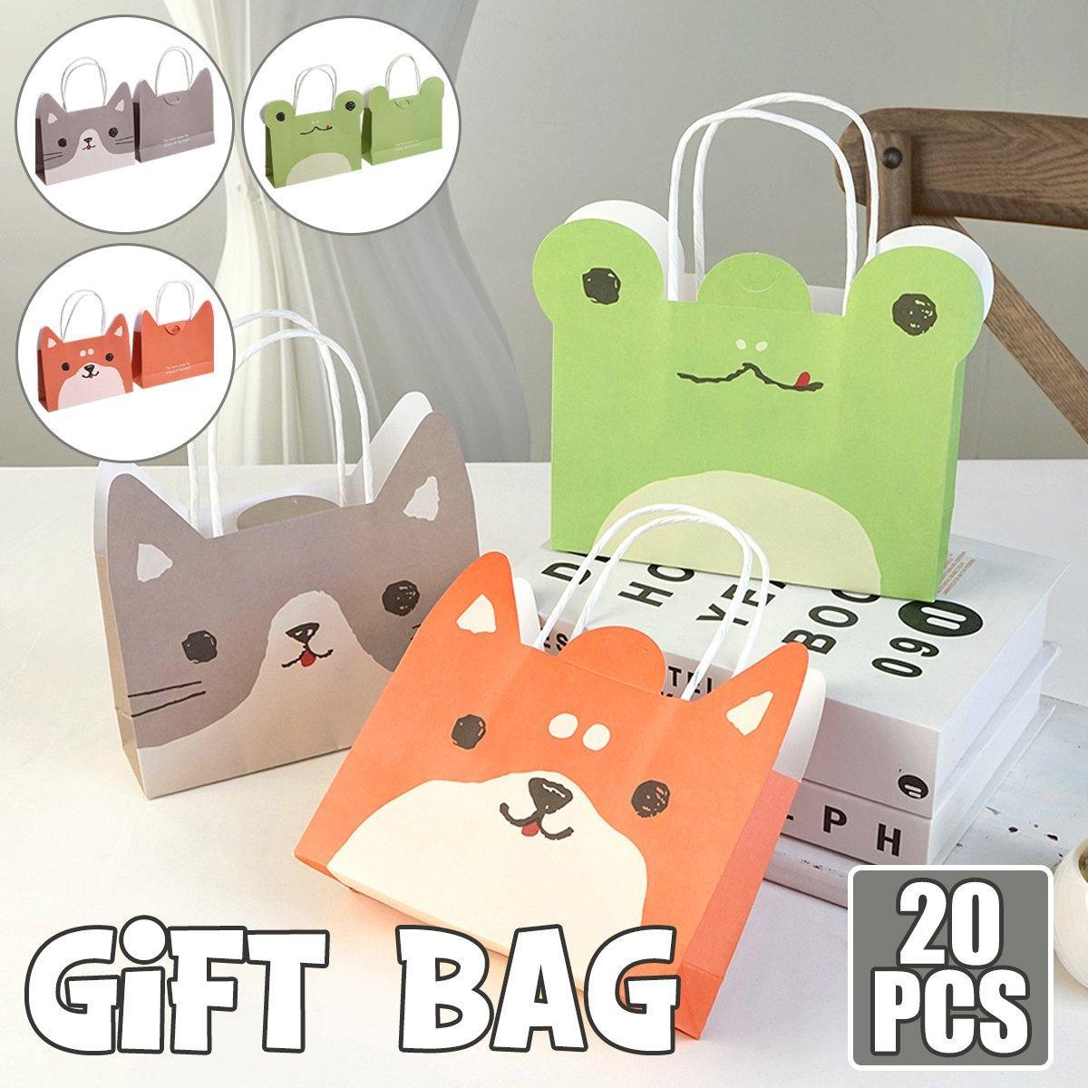 20PCS Cute Animal Shaped Gift Bags Kraft Paper Candy Bags Party Favour Tote Bags