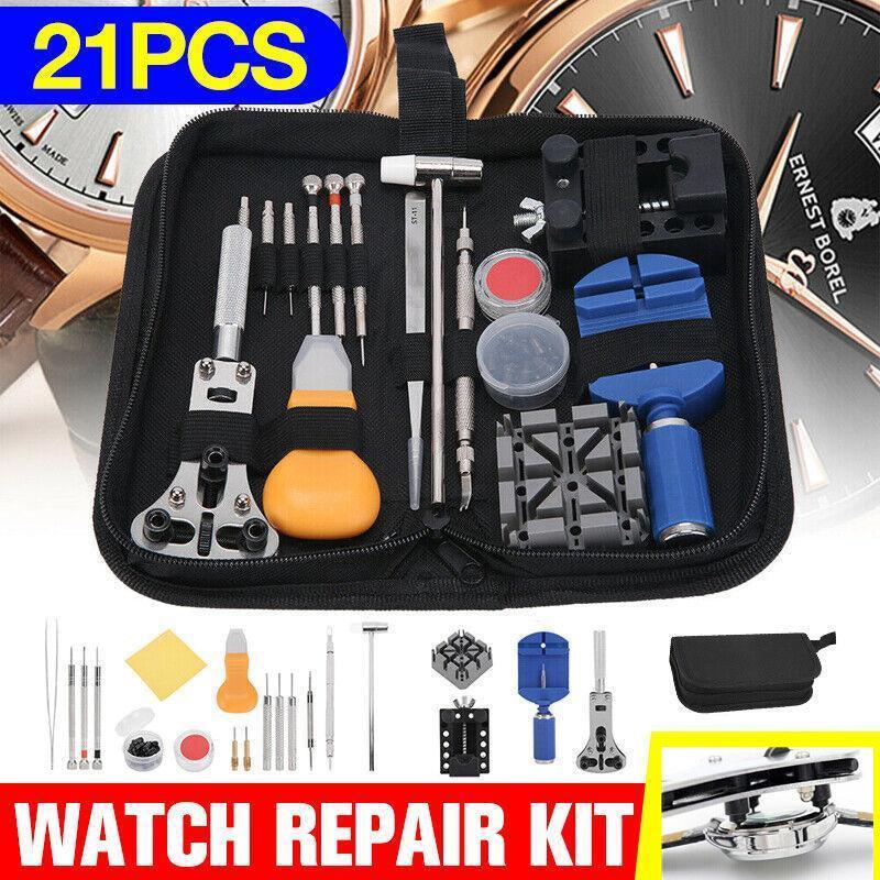 21Pcs Watch Repair Kit Tool Removal Spring Bar Battery Replacement Carrying Bag