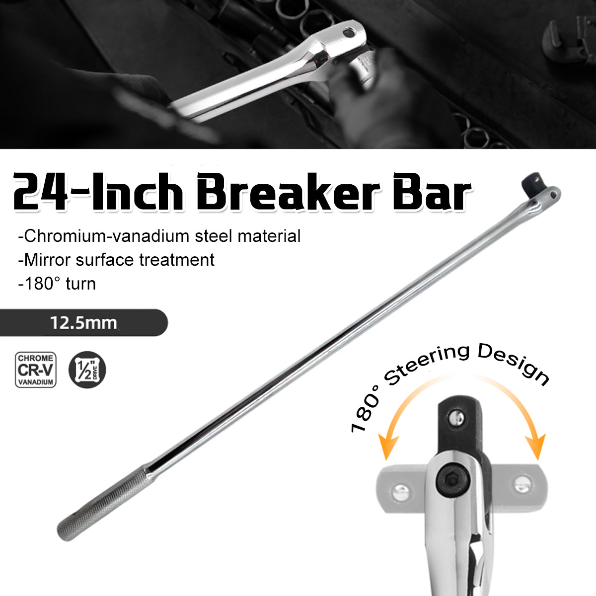 24in F-Shape CR-V Breaker Bar 1/2 Drive Socket Wrench for Car Truck Repair Use