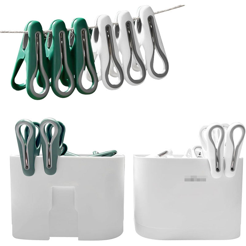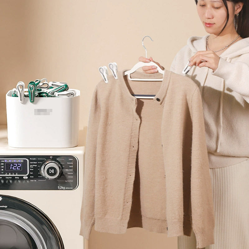 24pcs Clothes Pegs with Storage Basket Laundry Sock Clips Non Slip Drying Hanger