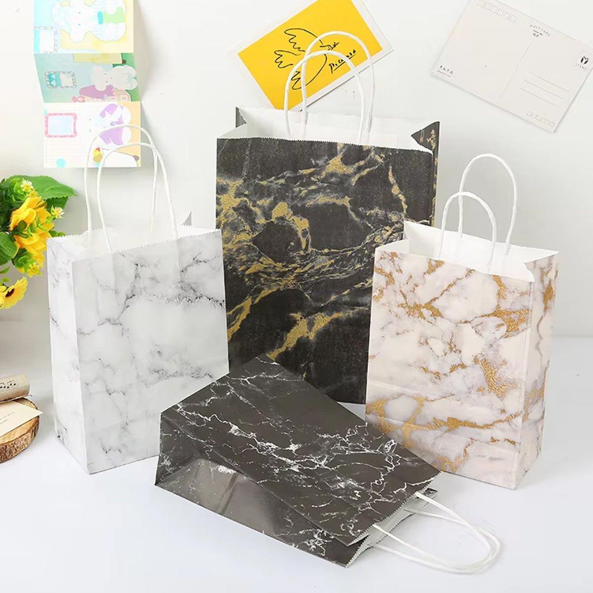 25PCS Marble Series Shopping Paper Bag Luxury Handbag Party Favor Gift Bags Set