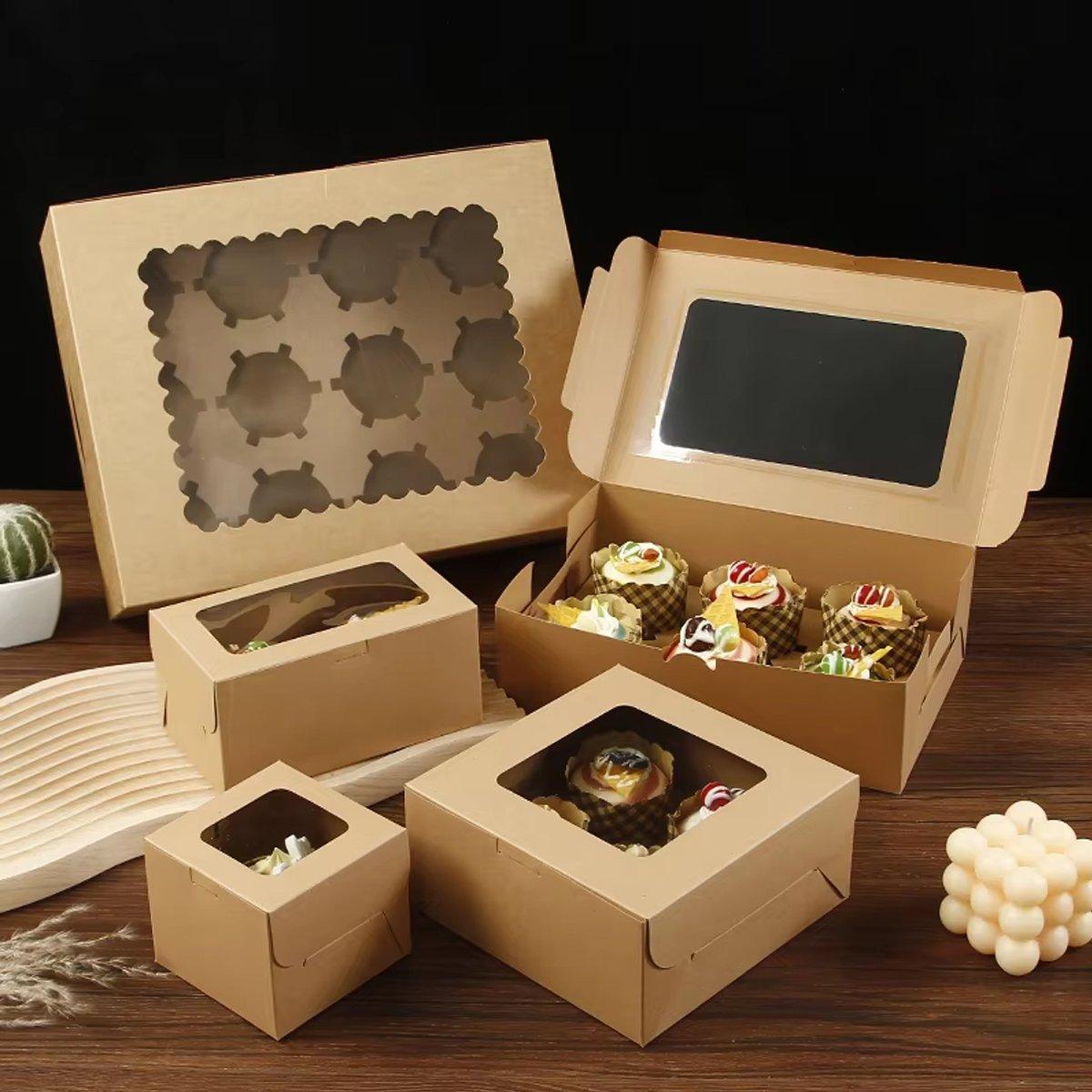 25Pcs Paper Cupcake Box with Window for Party Wedding Bakery Gift Packaging
