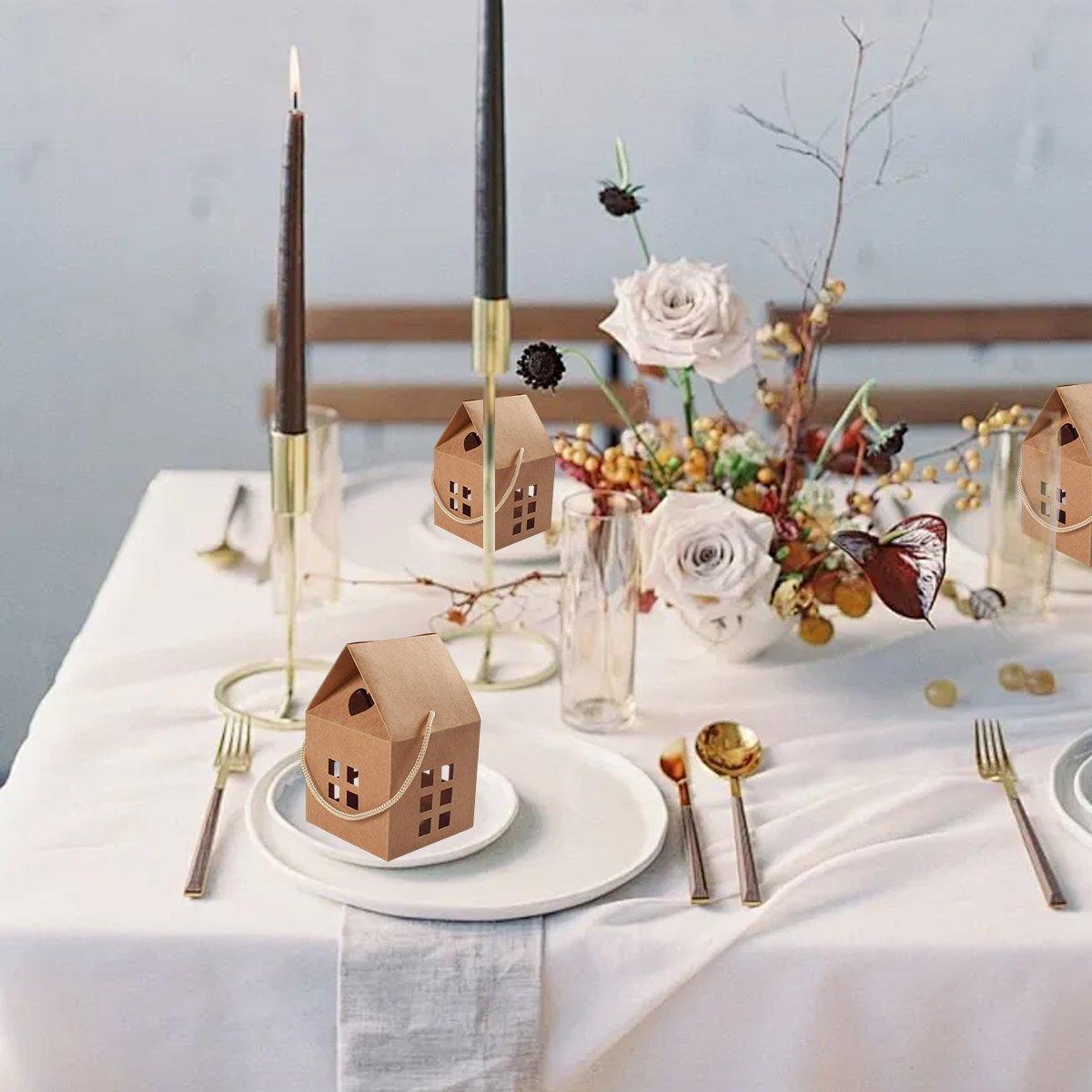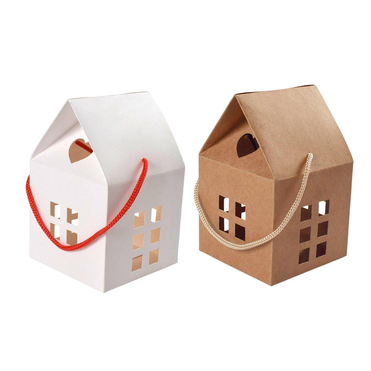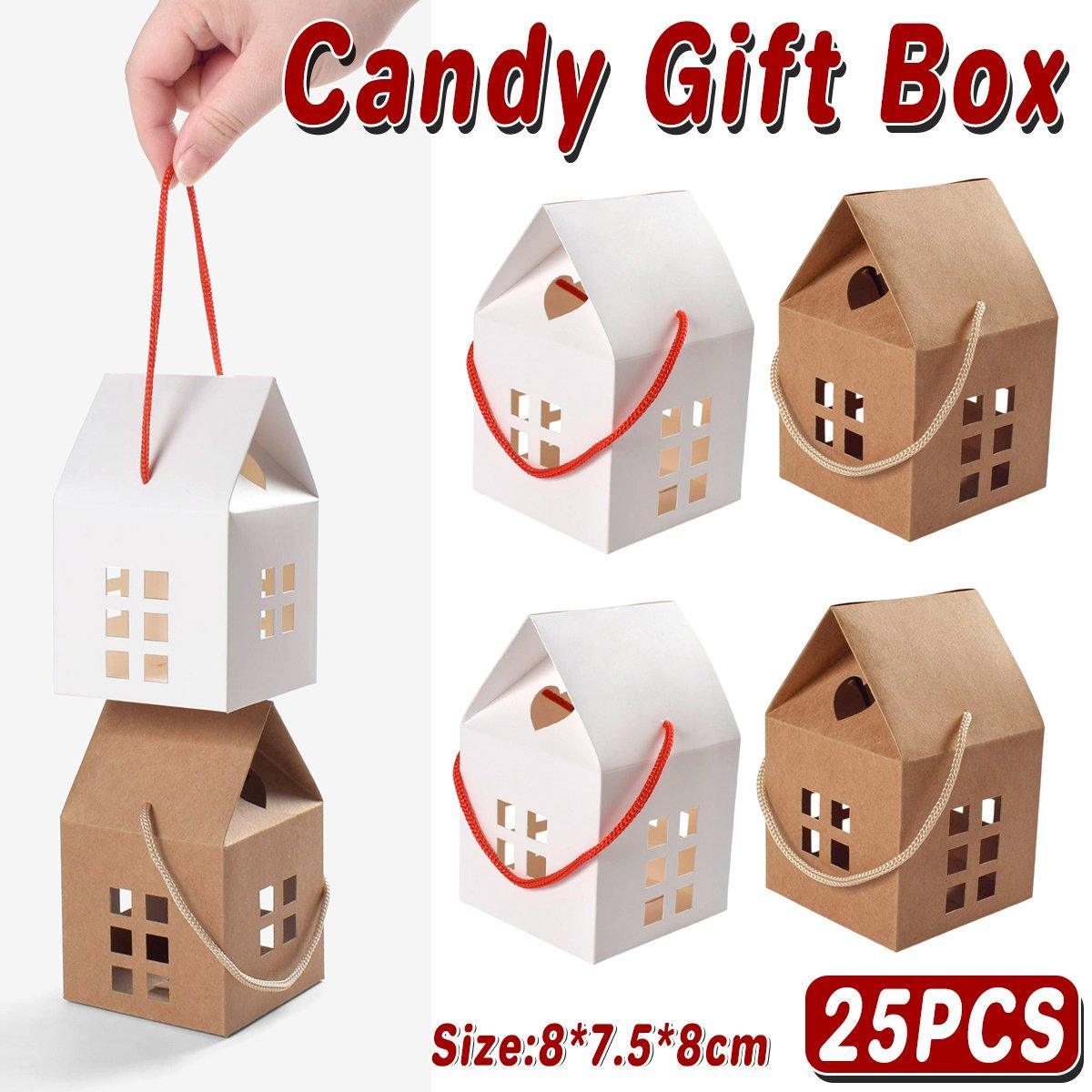 25pcs Small House Cookie Candy Box Portable Paper Gift Packing Box Party Favor