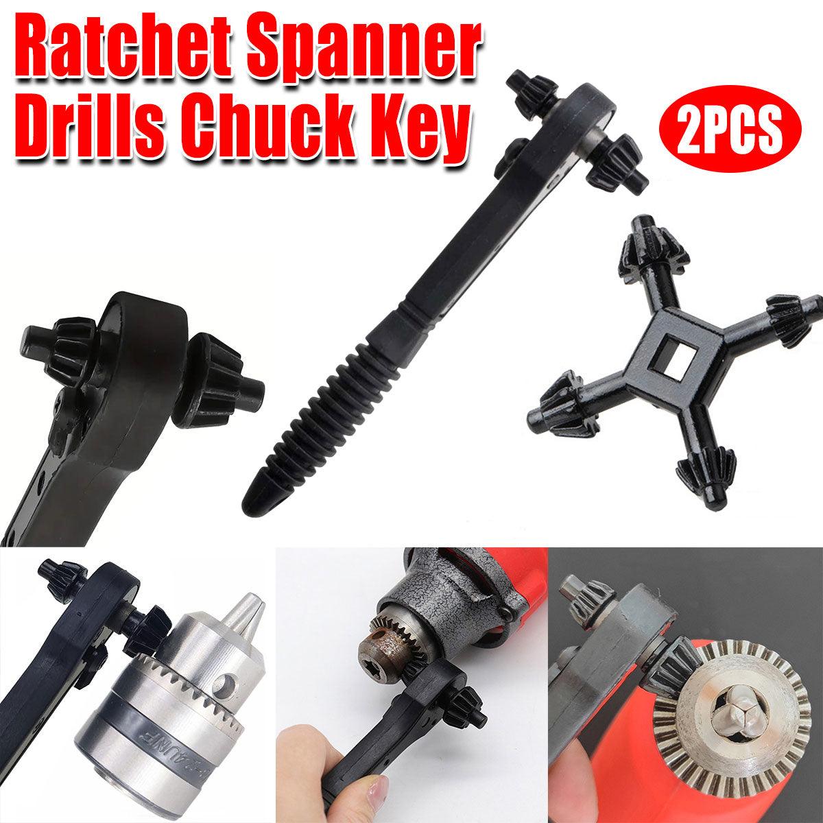 2pcs 2 in 1 Drill Chuck Ratchet Wrench Double Headed Spanner Key Tool Set