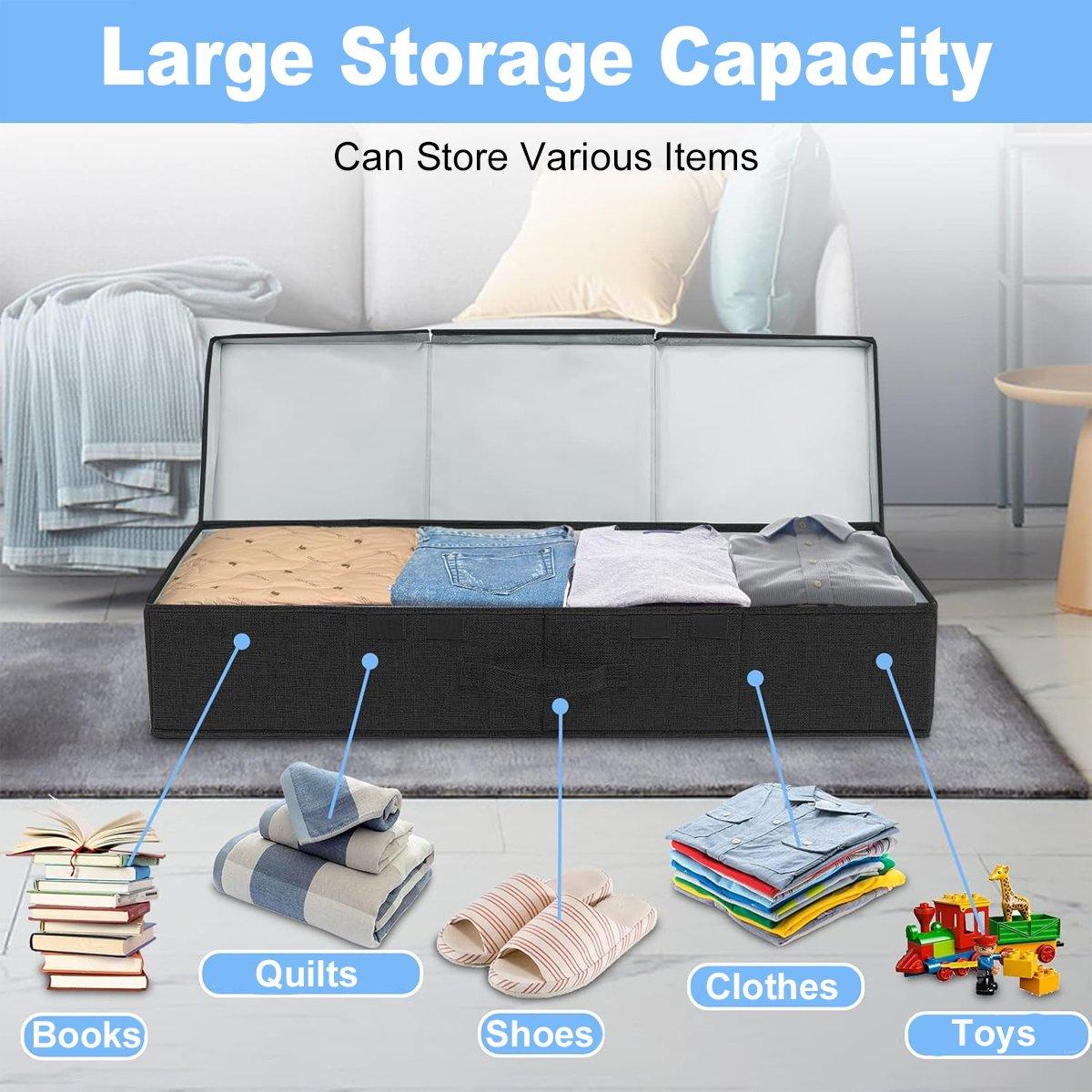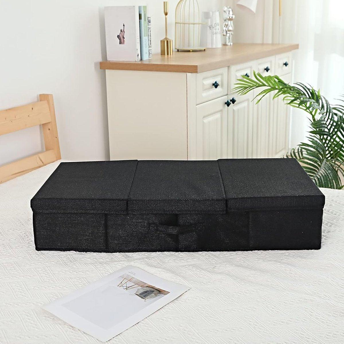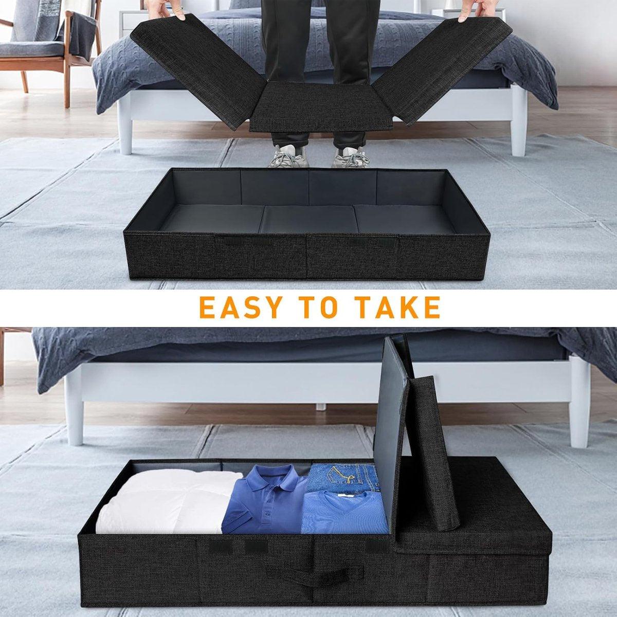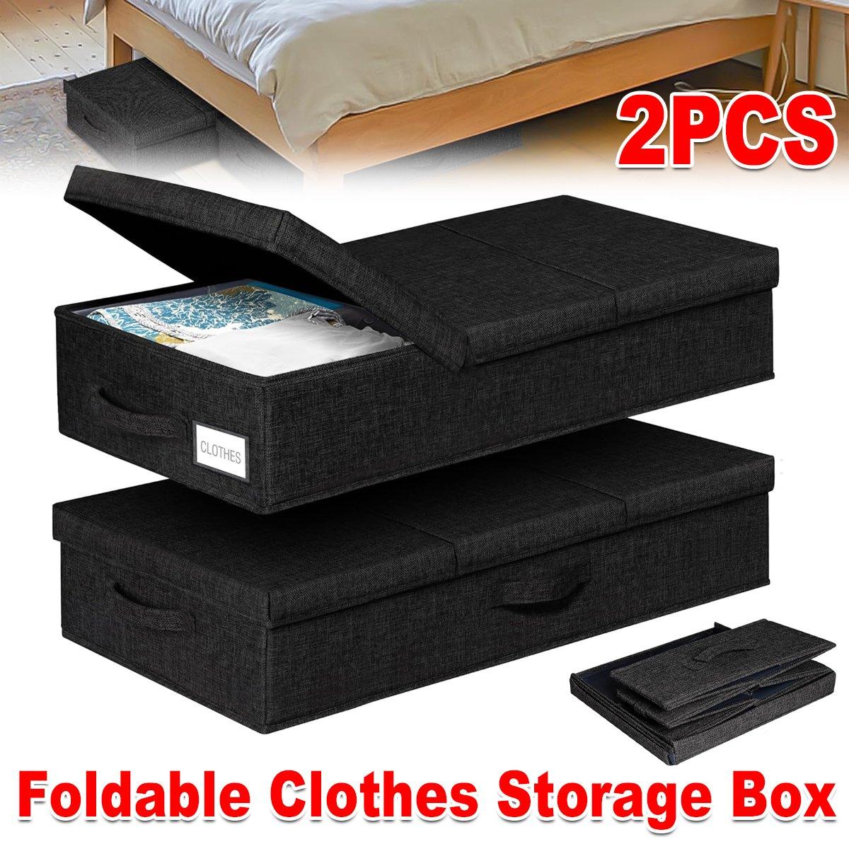 2PCS Black Foldable Storage Box Underbed with Lid Fabric Wardrobe Organizers
