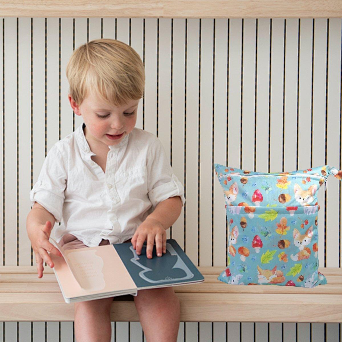 2PCS Cartoon Printed Diaper Bag Double Zipper Washable Storage Organizer