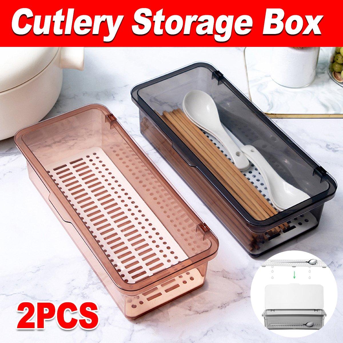 2PCS Chopsticks Box with Lid Dustproof Storage Container for Tea Set Cosmetic